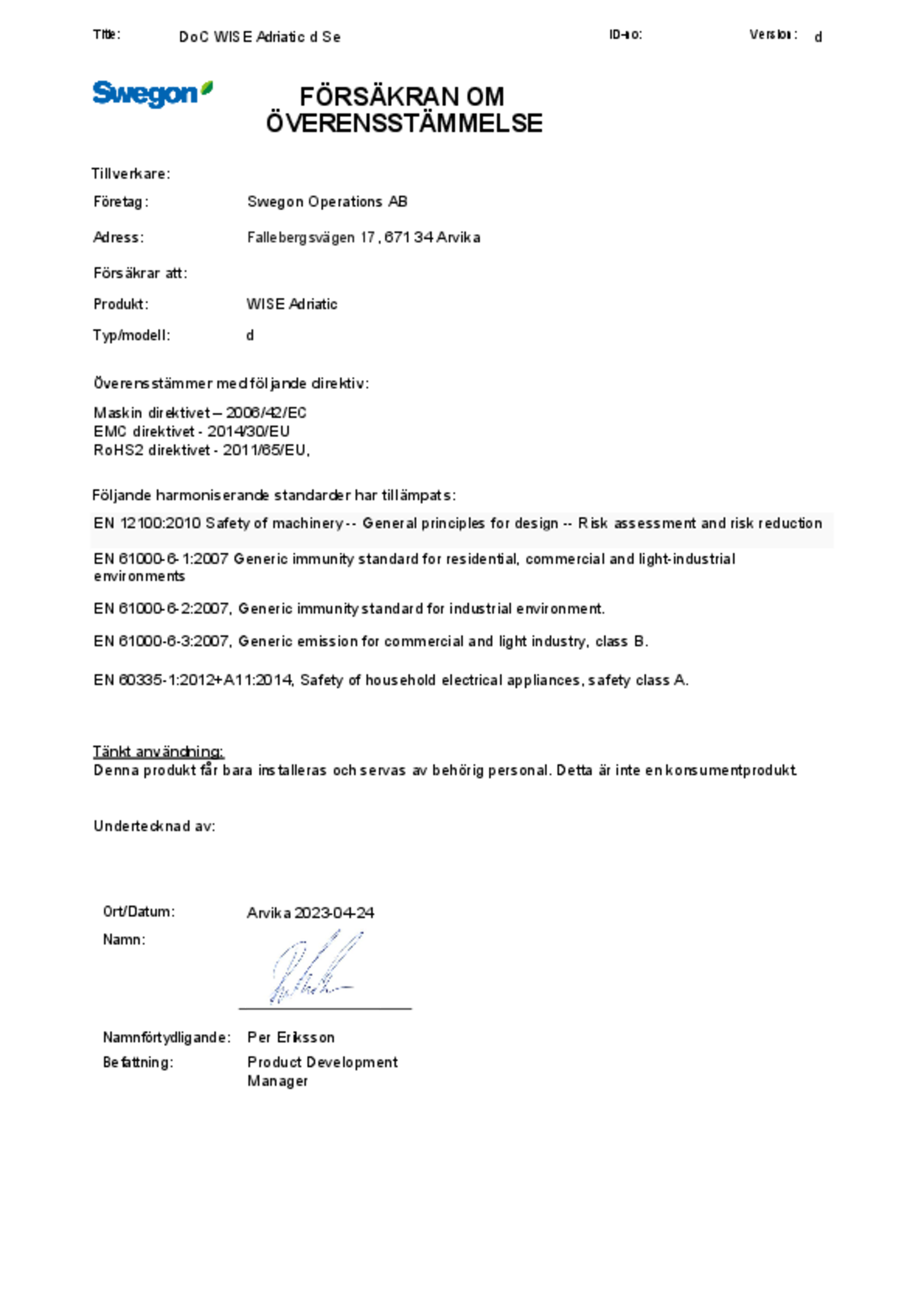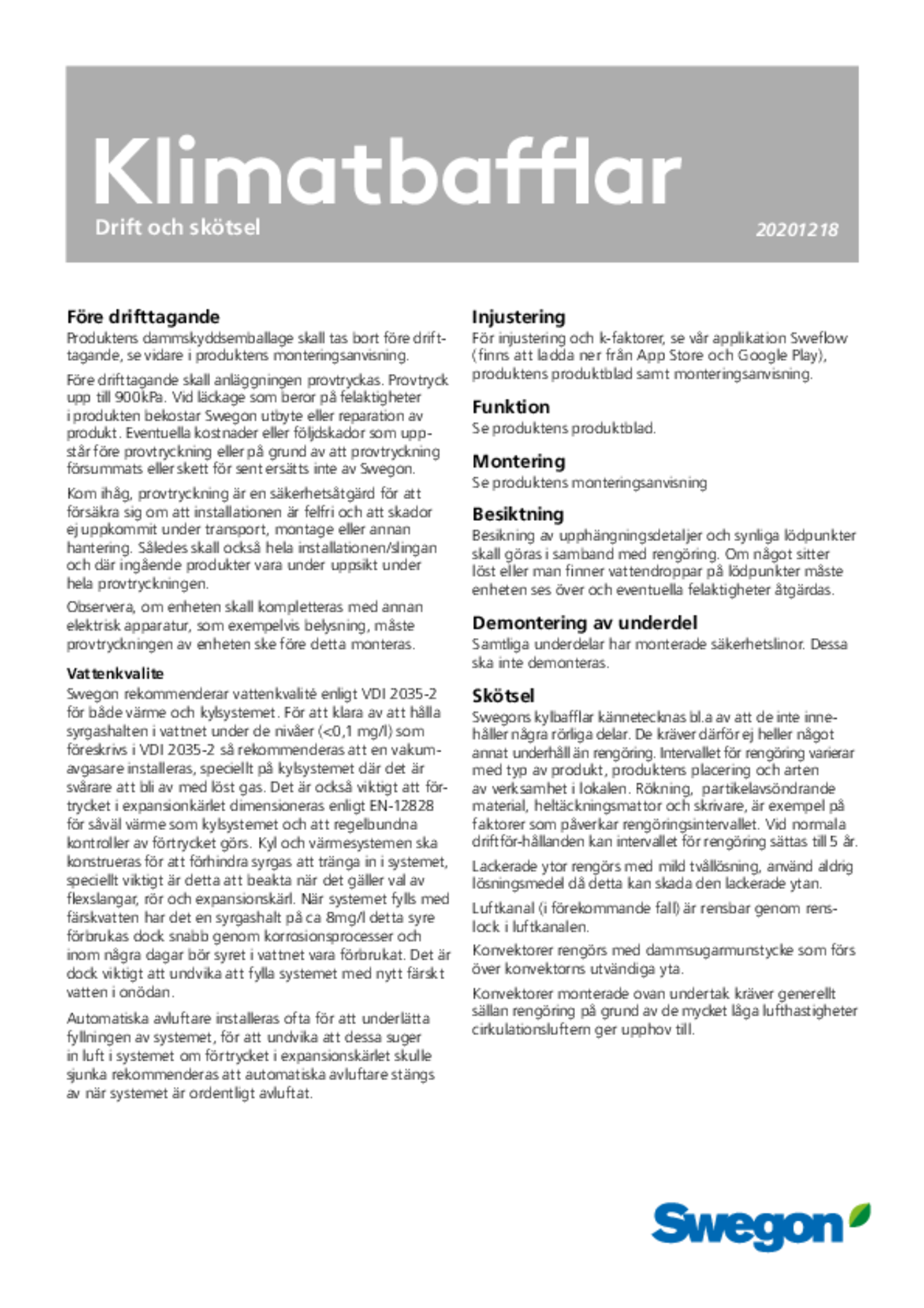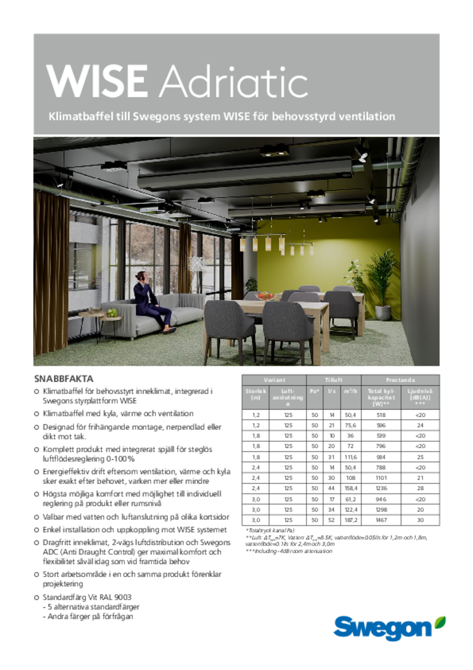 - Klimabaffel til behovsstyret indeklima, integreret i Swegons styreplatform WISE