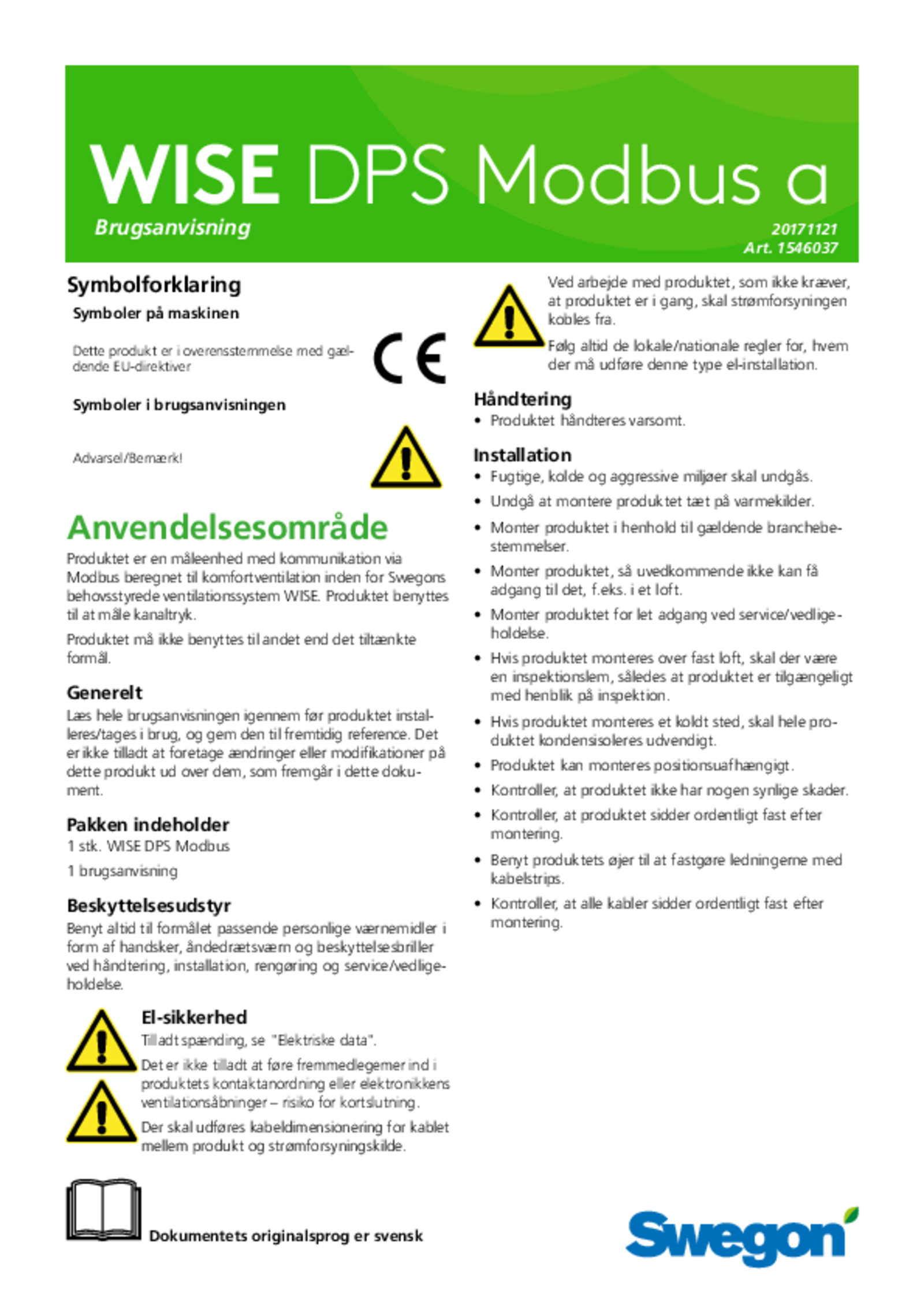 • Kan installeres i sÃ¥vel tilluft- som fraluftsystemer.