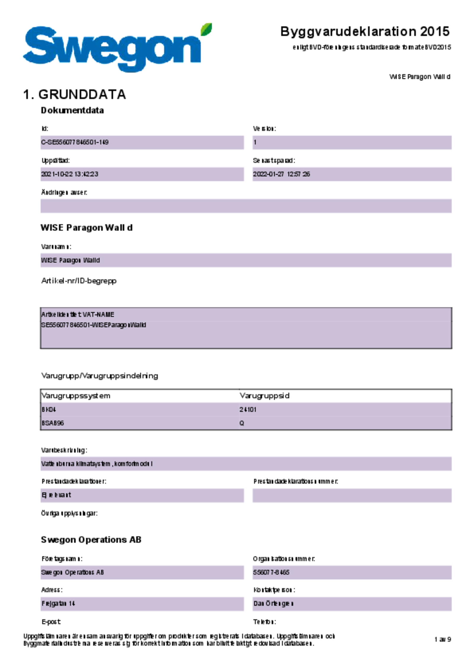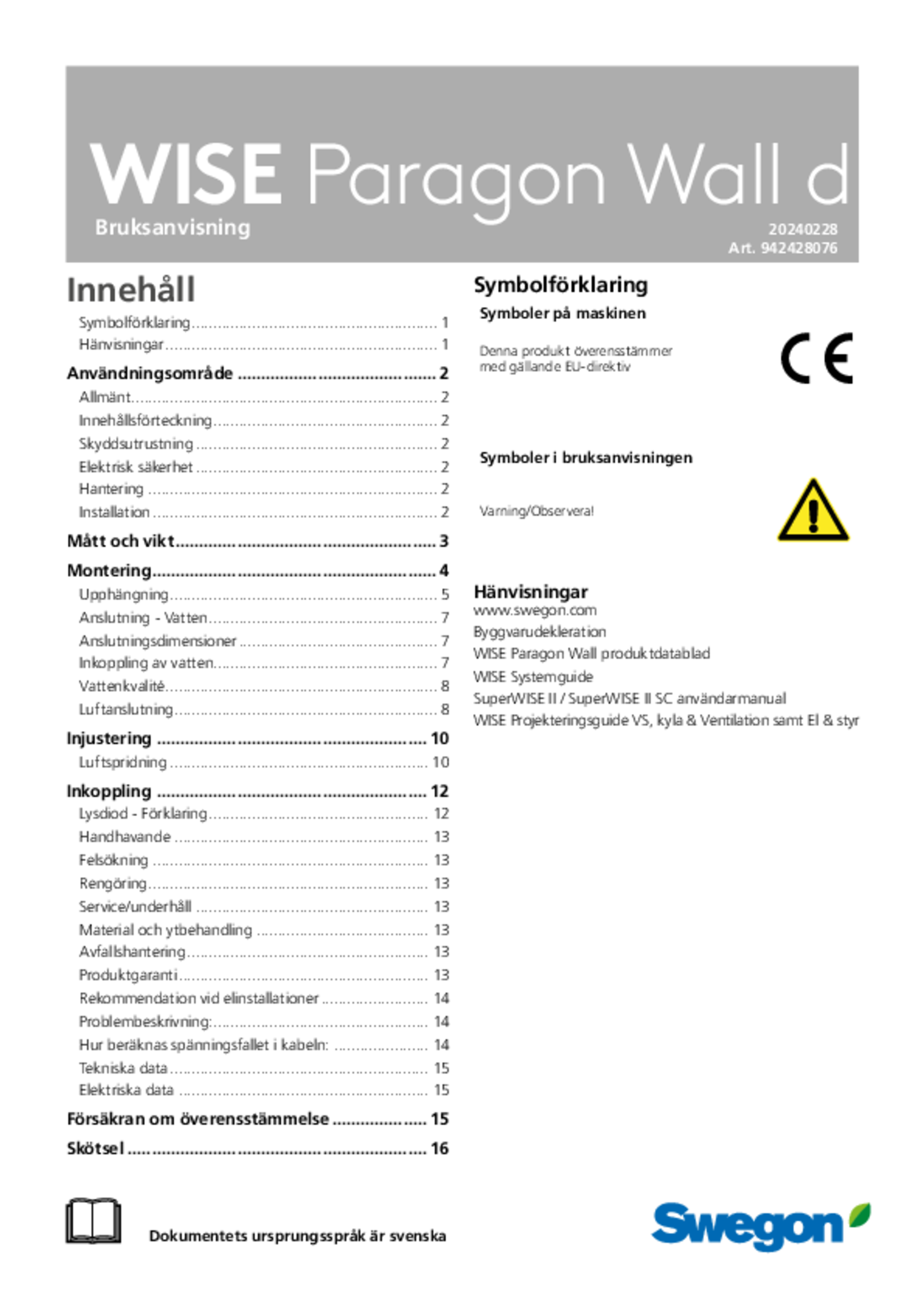 - Komfortmodul til behovsstyret indeklima, integreret i Swegons styreplatform WISE