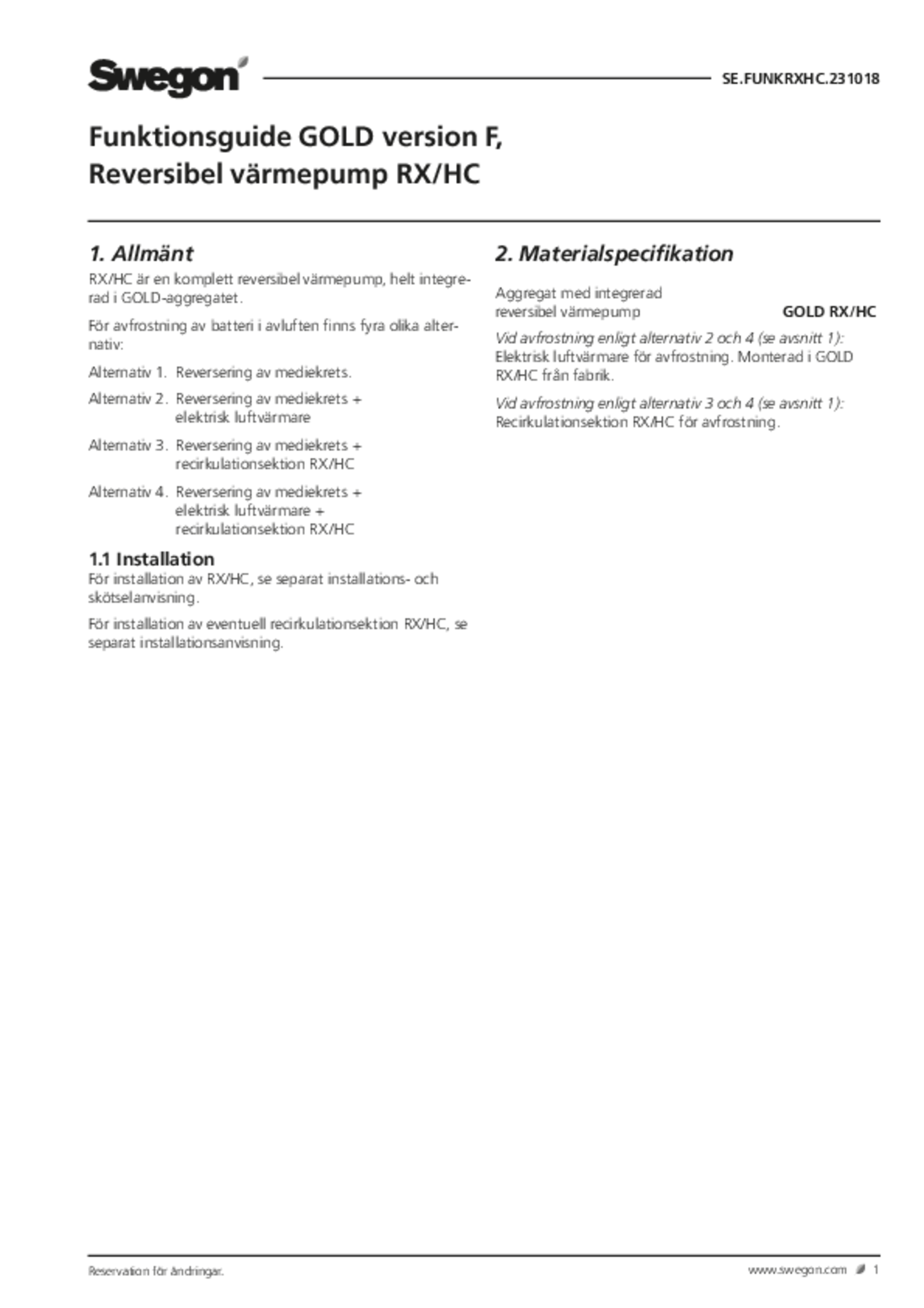 | Reversibel värmepump, funktionsguide (pdf 394.75kB) | GOLD RX/HC | DV-manual | |