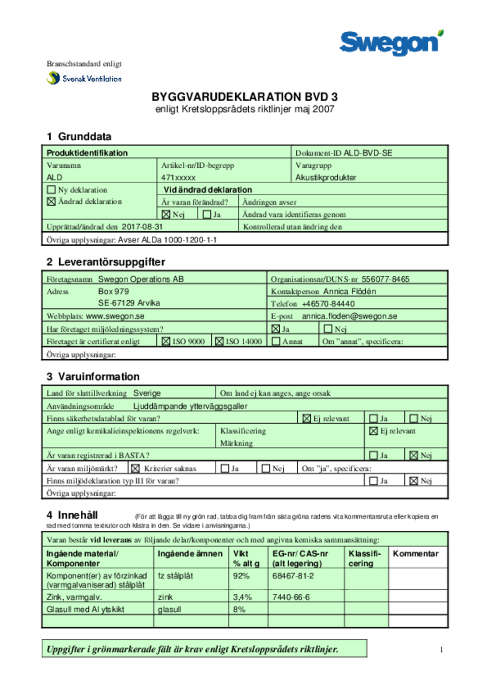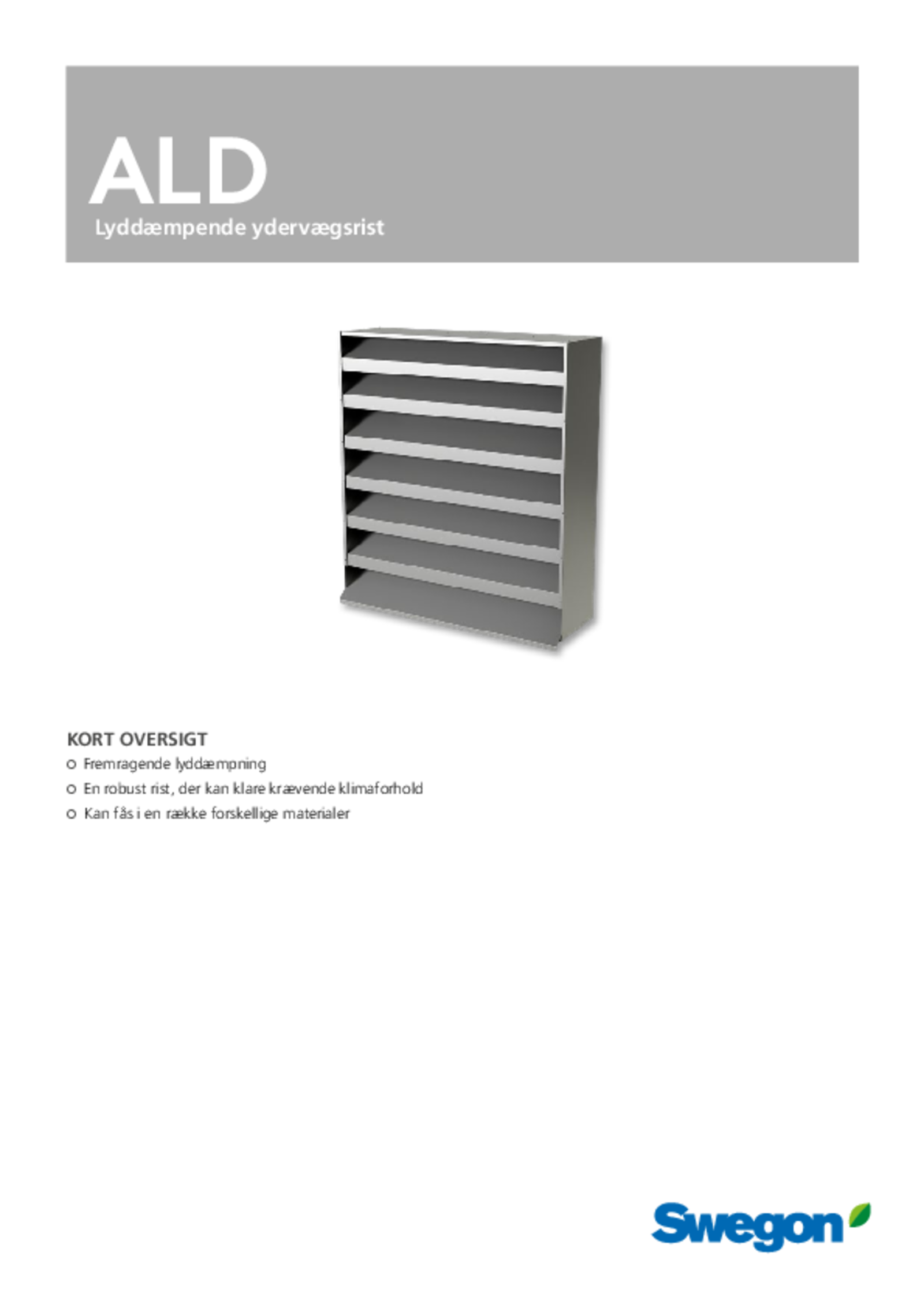 - Materiale: Leveres som standard i galvaniseret stålplade til korrosivitetsklasse C3 eller aluminium til korrosivitetsklasse C4