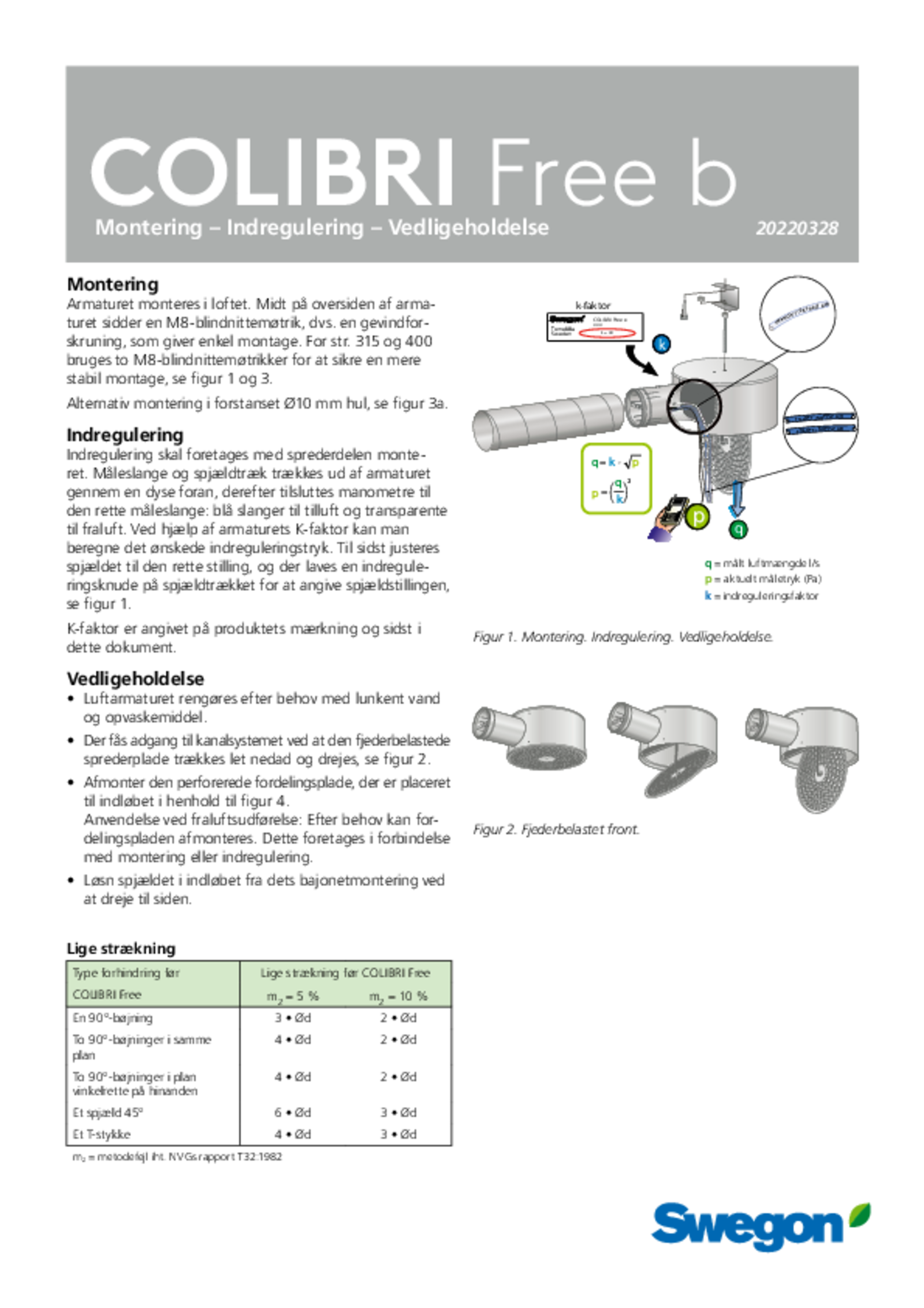 - Fordelingsplade kan efter behov afmonteres ved fraluftsystemer, dette klares let i forbindelse med montering/indregulering