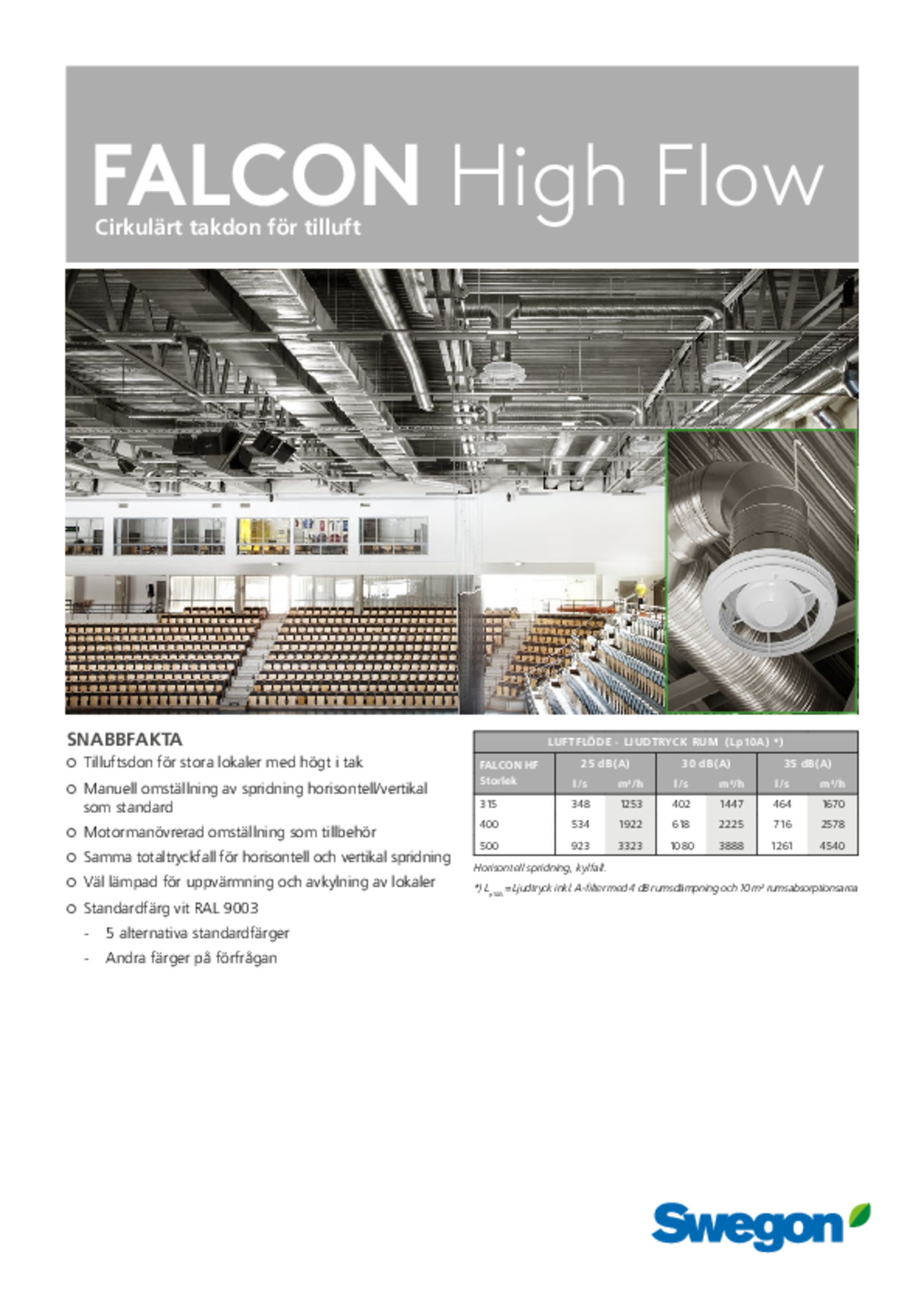 • Tilluftsarmatur til store lokaler med højt til loftet