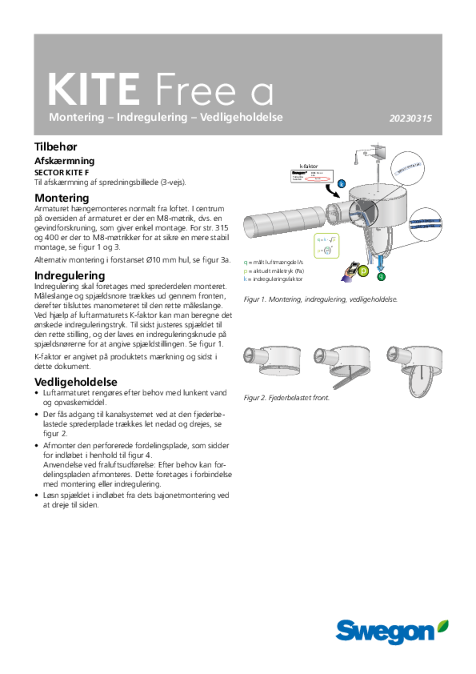 - Fordelingsplade kan efter behov afmonteres ved fraluftsystemer, dette klares let i forbindelse med * montering/indregulering