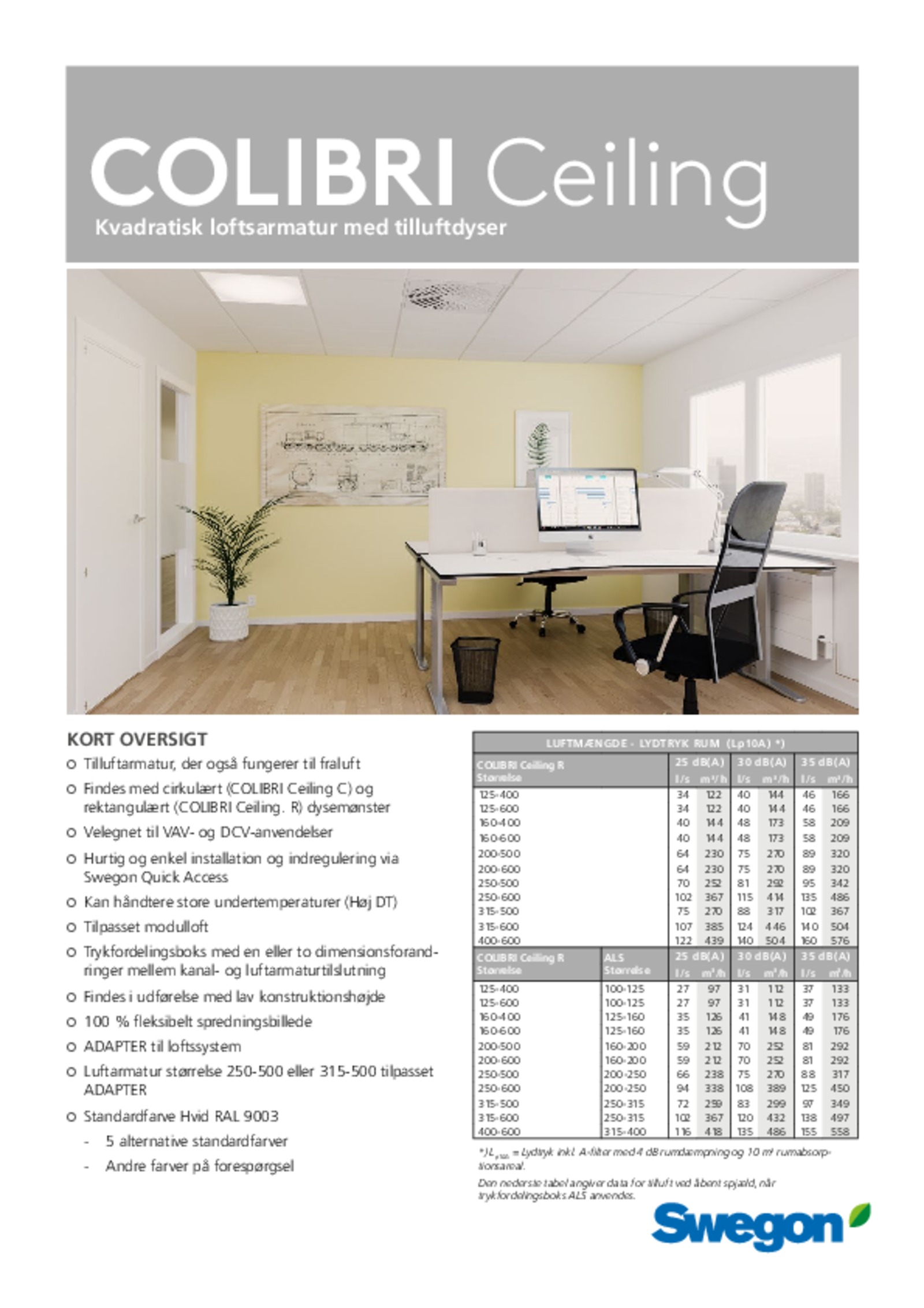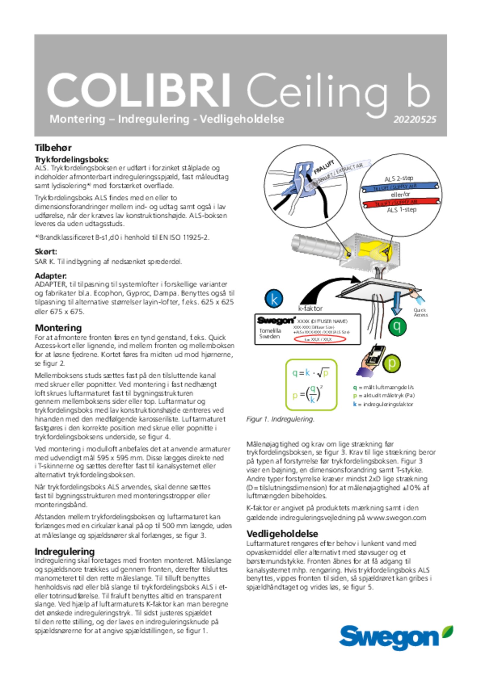 - Hurtig og enkel installation og indregulering via Swegon Quick Access