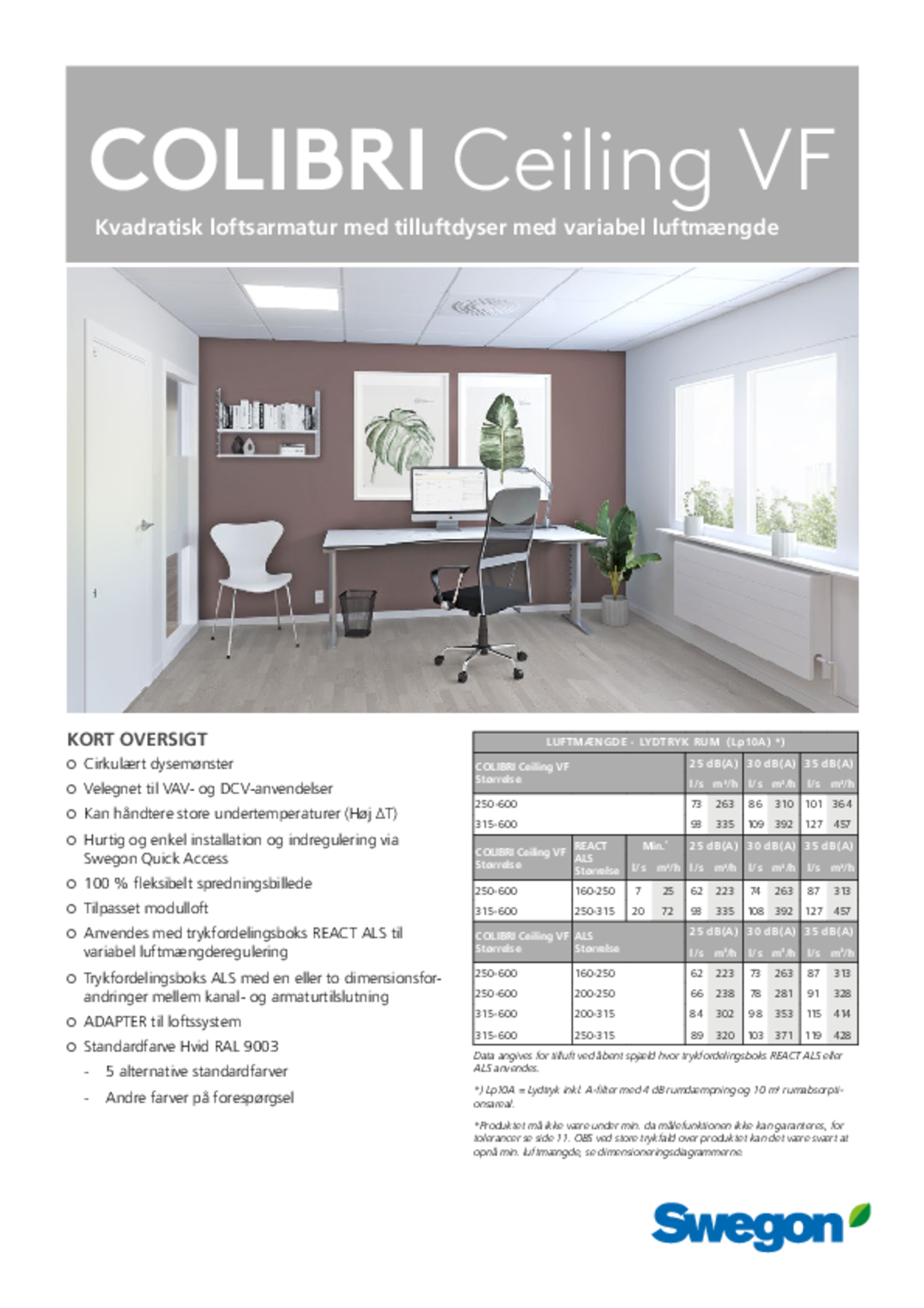 - Hurtig og enkel installation og indregulering via Swegon Quick Access