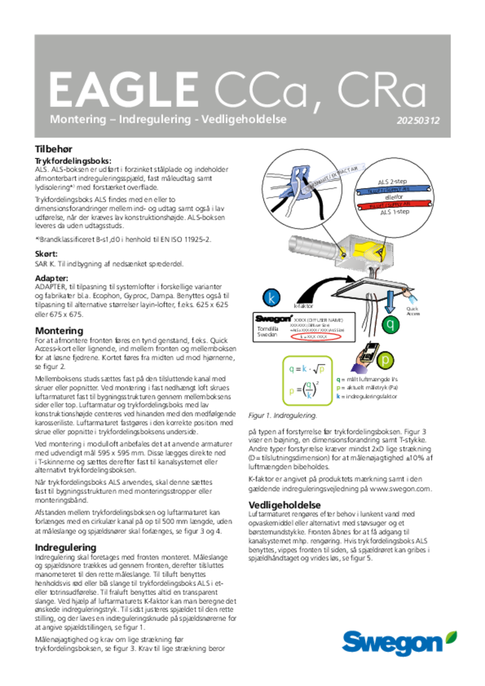 - Hurtig og enkel installation og indregulering via Swegon Quick Access