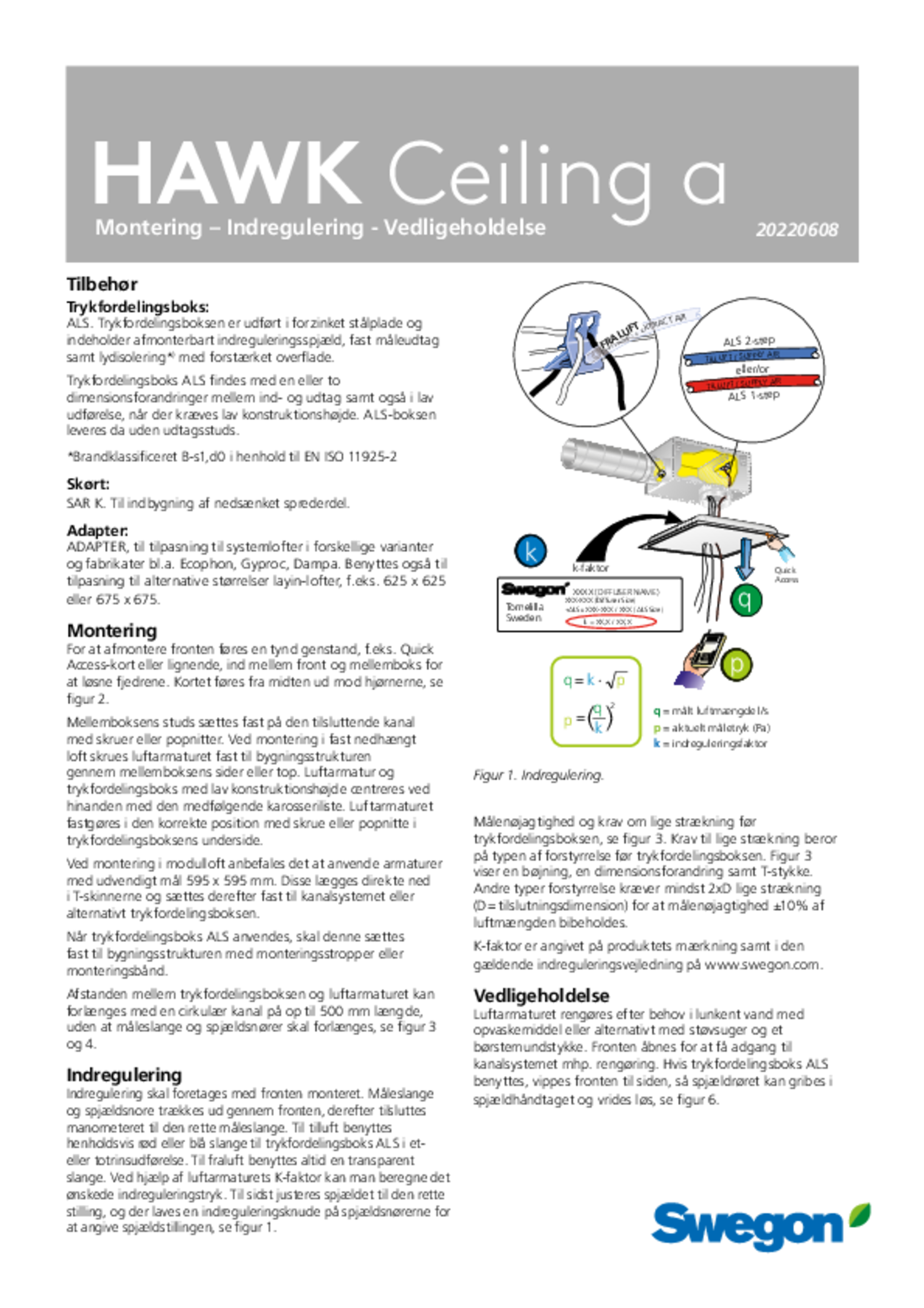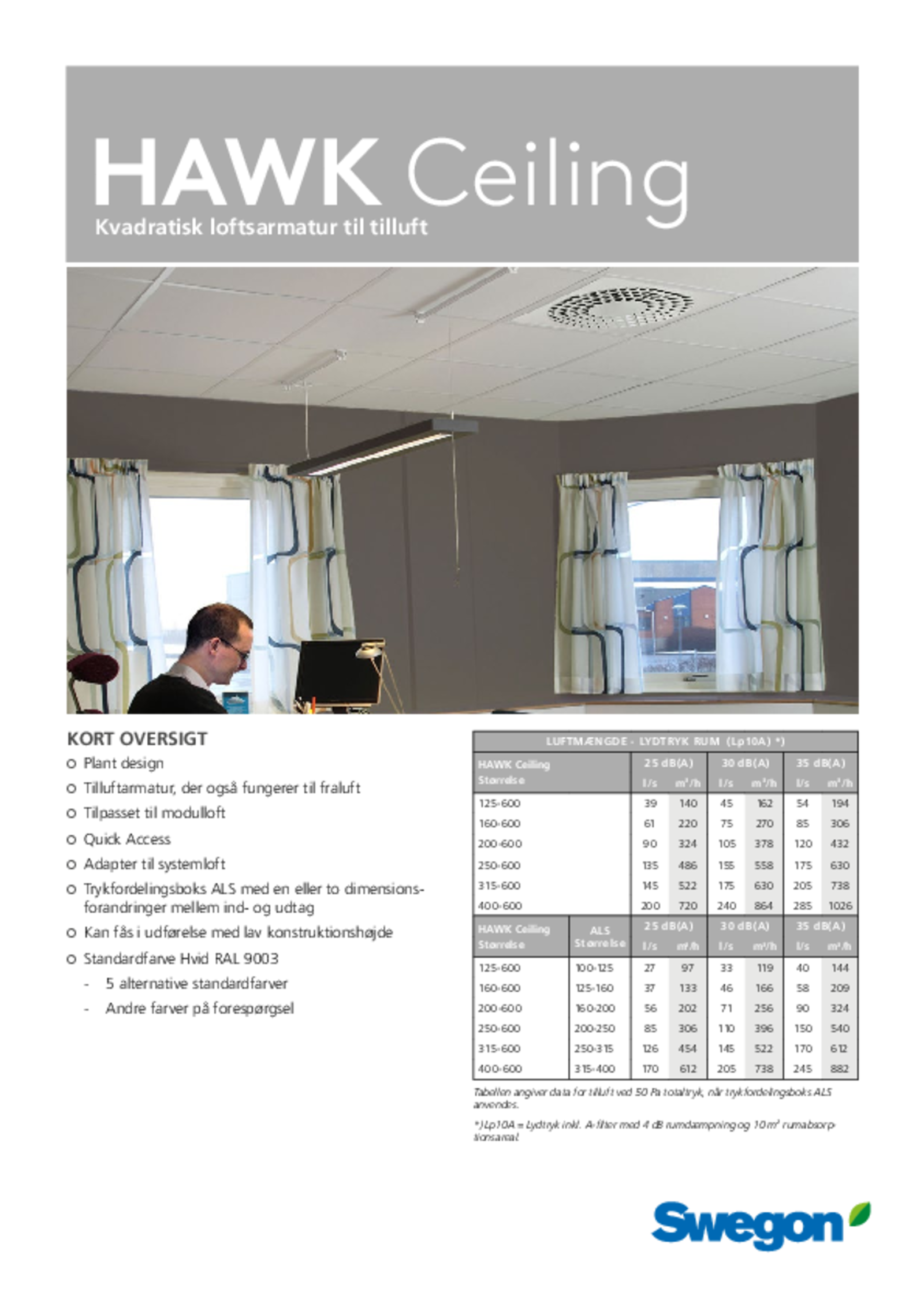| Kvadratisk loftsarmatur til tilluft (pdf 2.06MB) | HAWK Ceiling a | Teknisk katalog | |