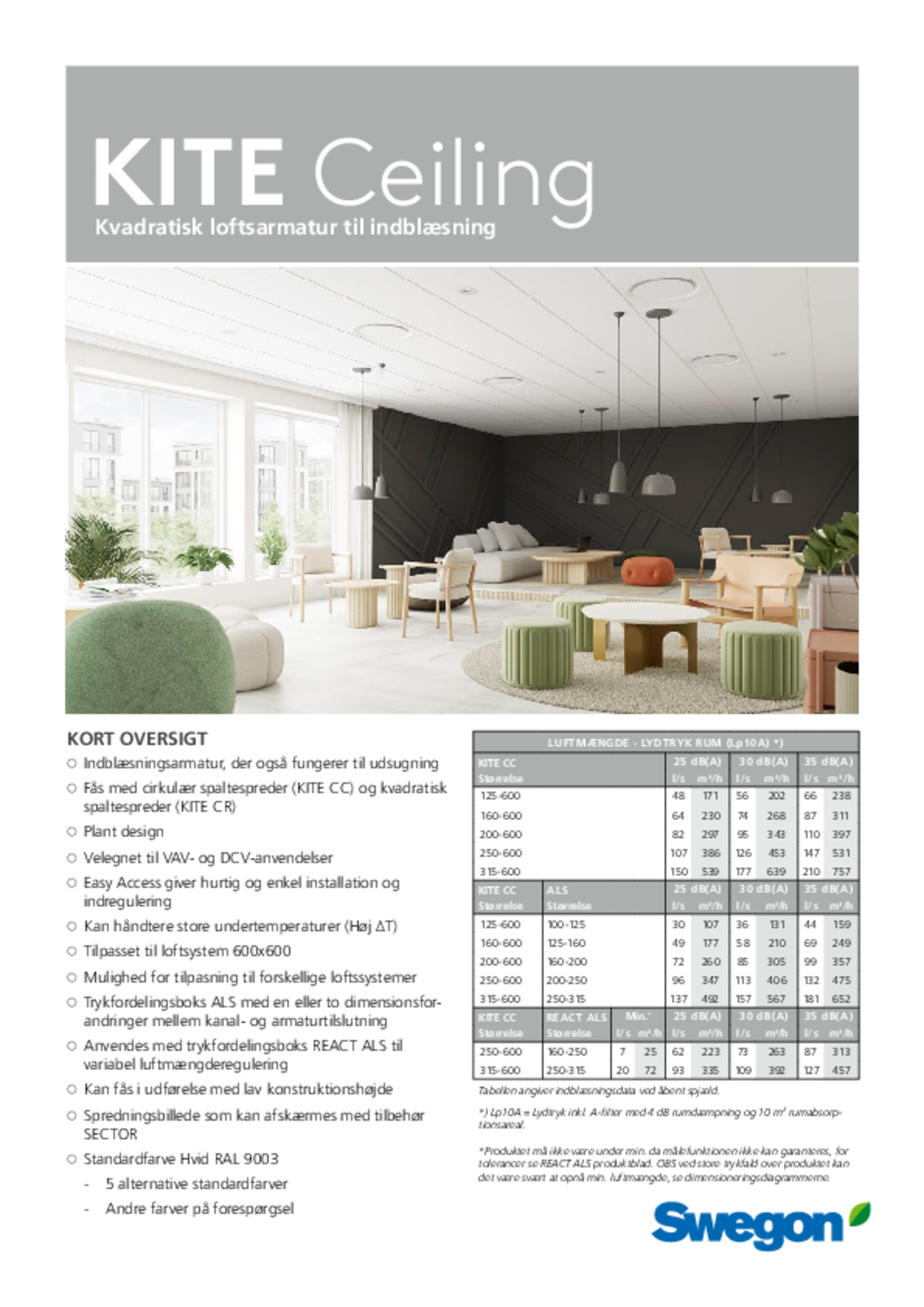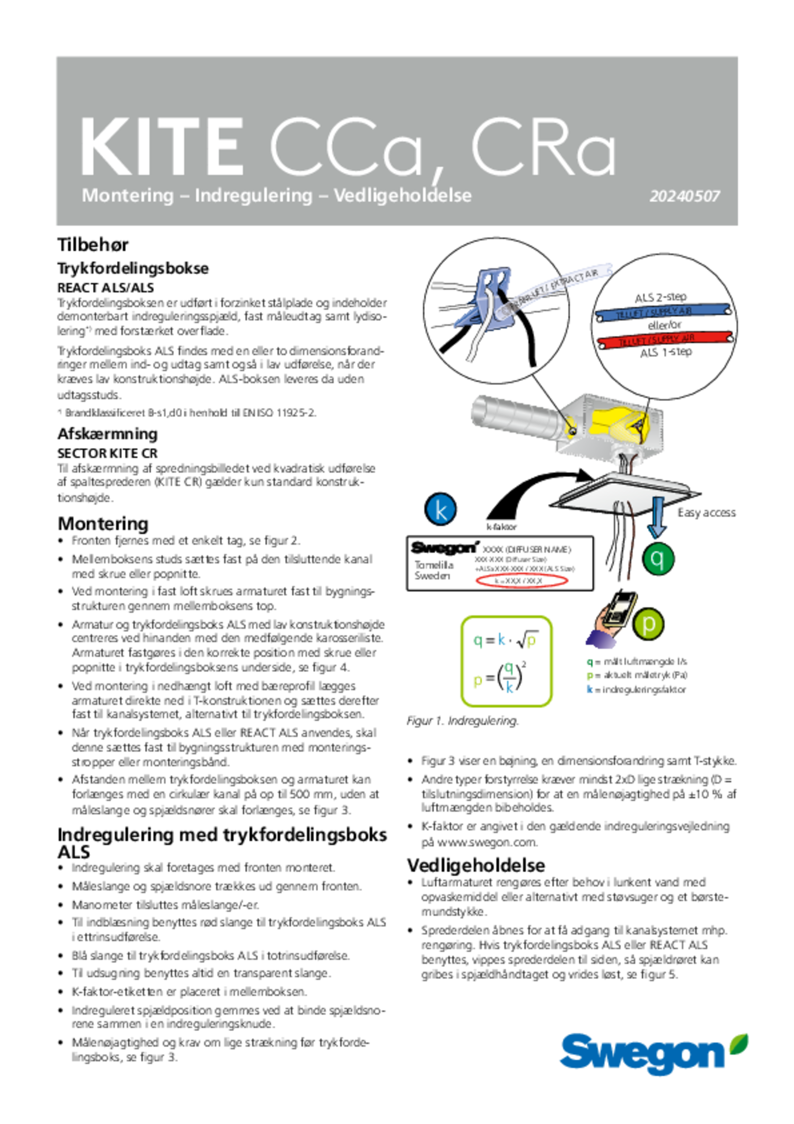 - Anvendes med trykfordelingsboks REACT ALS til variabel luftmængderegulering