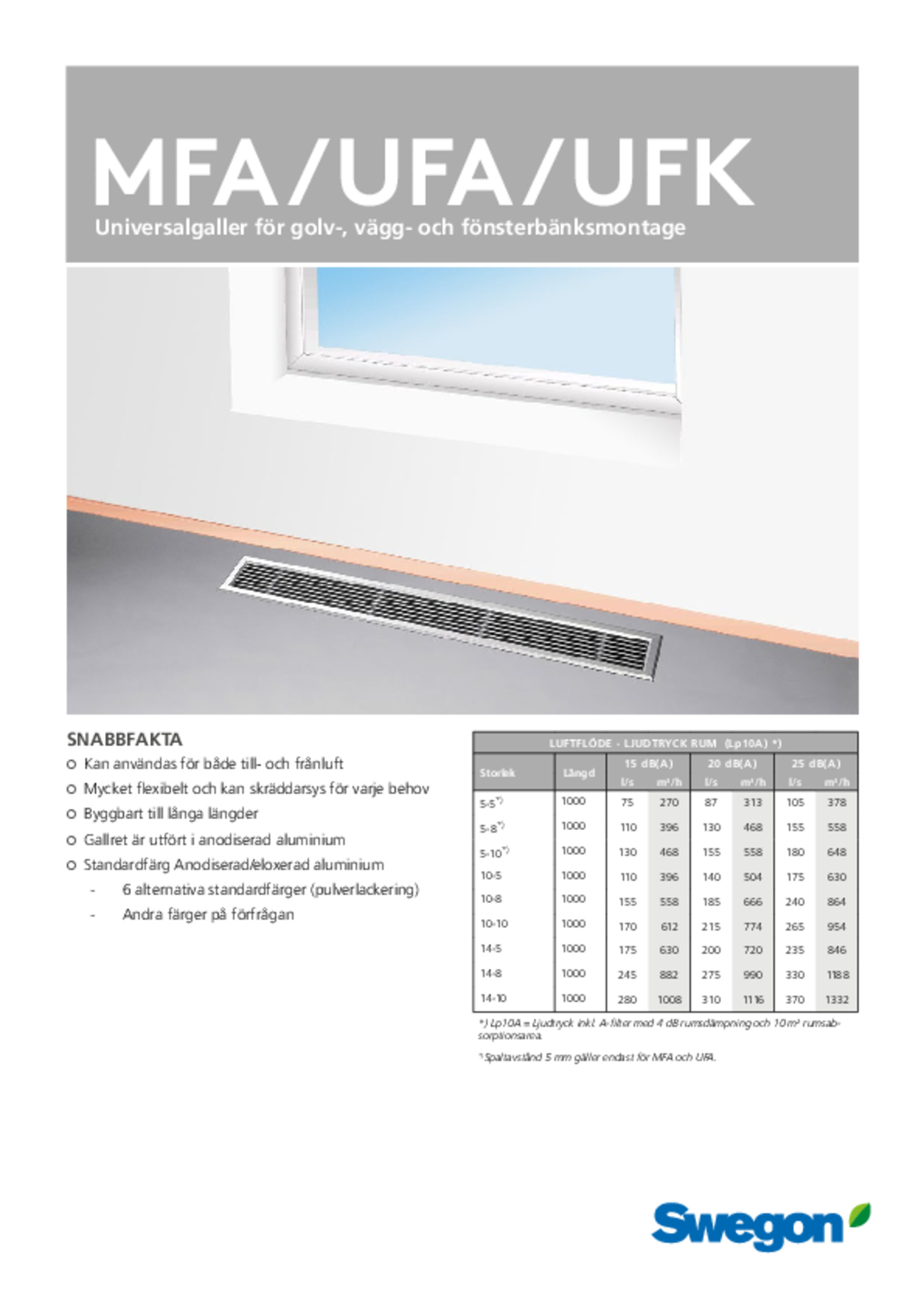 MFA, UFA og UFK karmfaste aluminiumsblade, strømlinede for at give stabil luftstrøm. Risten er meget stærk og kan derfor holde til en stor ydre belastning. Universalrist kan monteres i ubegrænset længde.