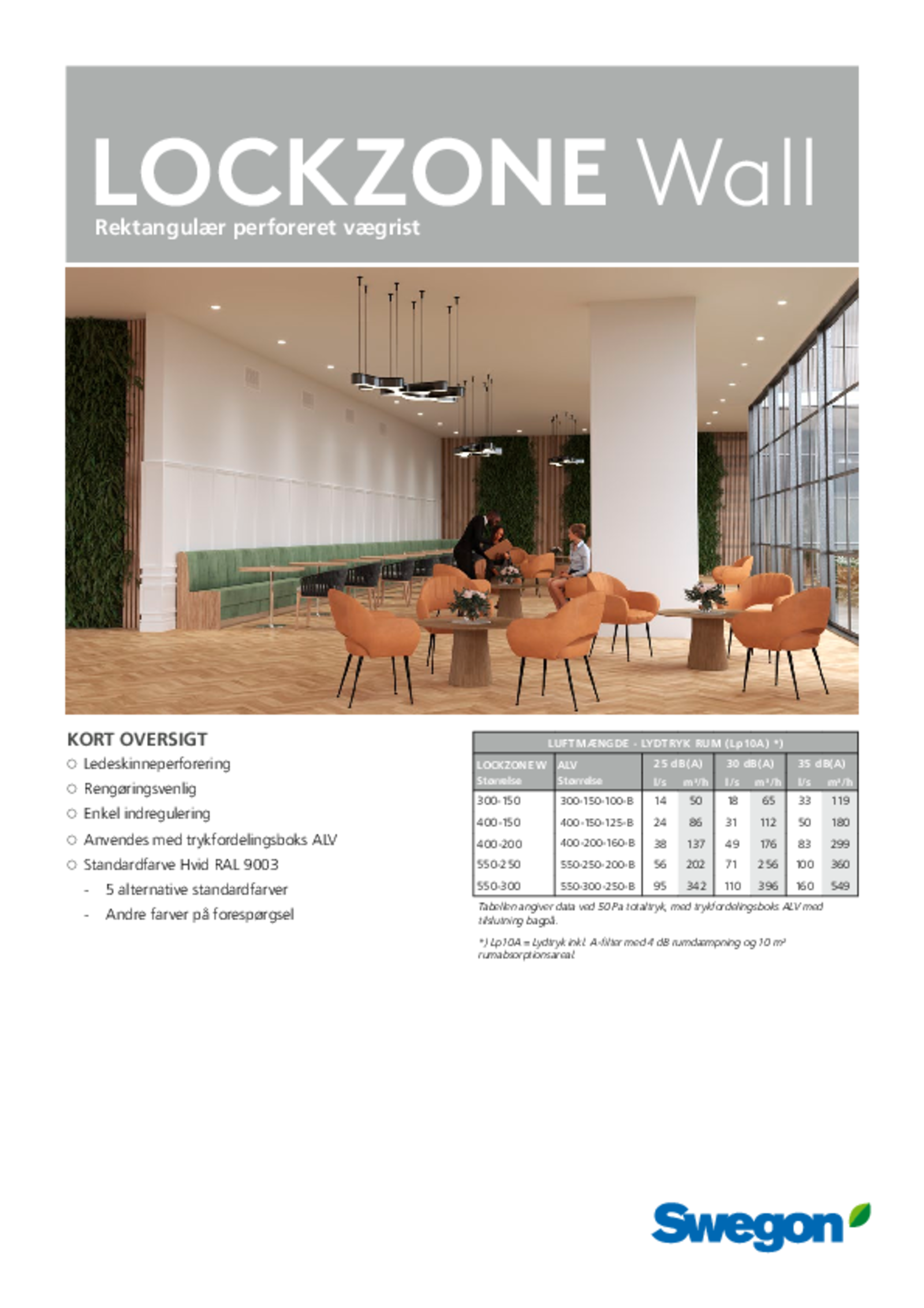 Rectangular supply air diffusers with guide vane perforations for installation in a wall. The air diffusers are well-suited for constant as well as variable air flow The specially designed guide vane perforations enable the supply of air at temperatures substantially below room temperature and large air flows.