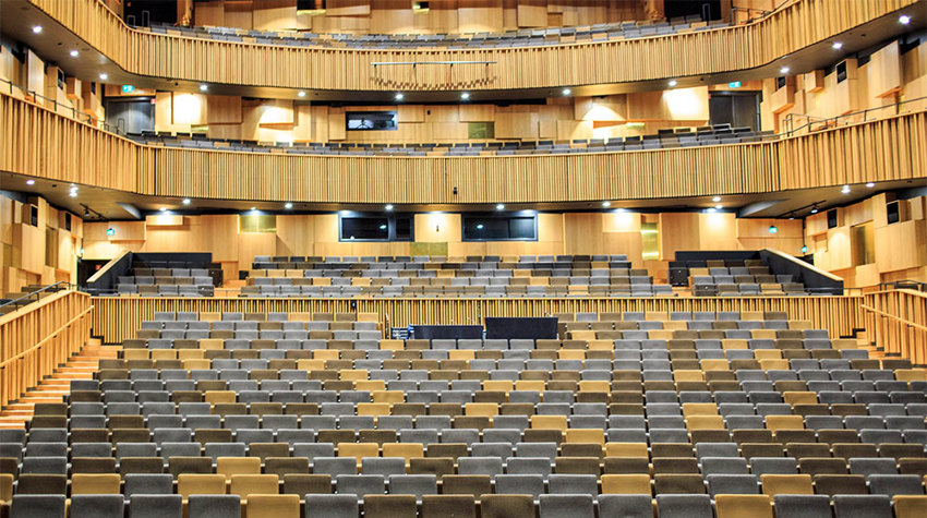 Et af de mest følsomme rum i bygningen var den store koncertsal. Her optræder og øver professionelle musikere fra hele verden sig, og for at få det bedst mulige udbytte af både musikere og instrumenter, kræves der et miljø uden træk og mislyd. Selv publikum i denne type lokale er følsomme over for indemiljøet, studier viser en tydelig sammenhæng mellem forringede koncertoplevelser og forstyrrende lyd og dårlig ventilation.