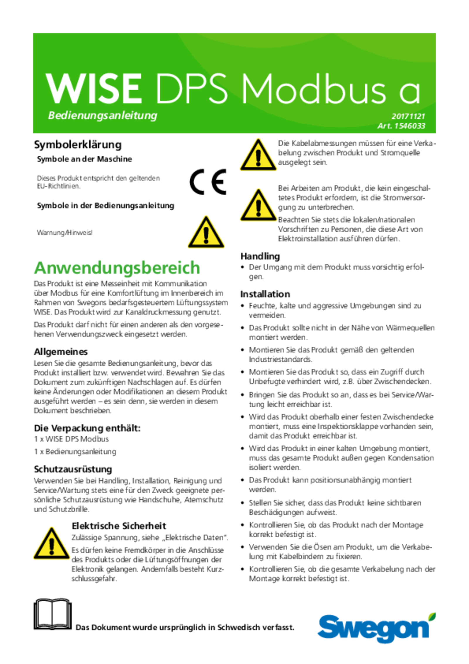 Messeinheit für Swegons WISE-System für die bedarfsgesteuerte Lüftung