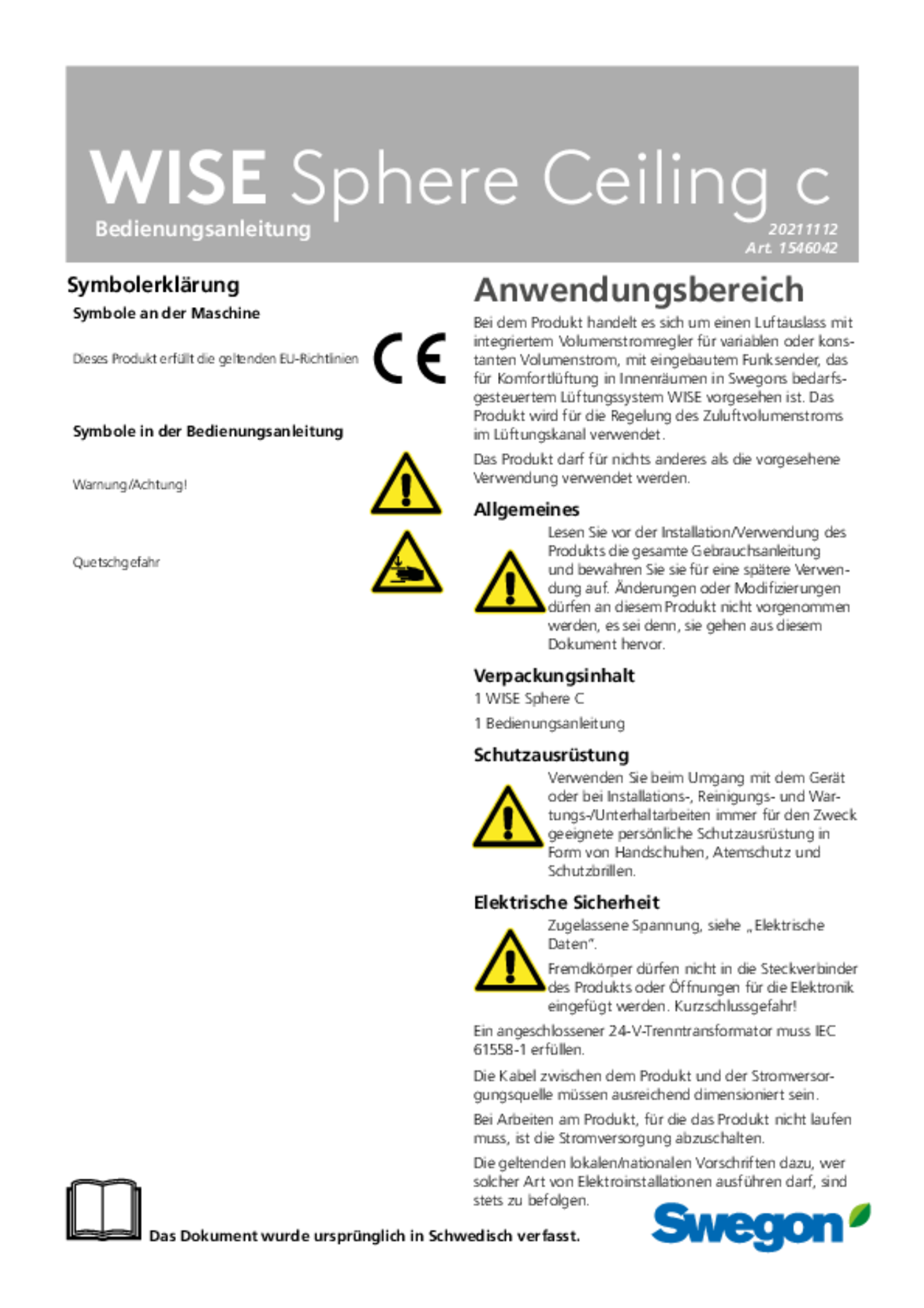 Aktiver Luftauslass für Swegons WISE-System für die bedarfsgesteuerte Lüftung