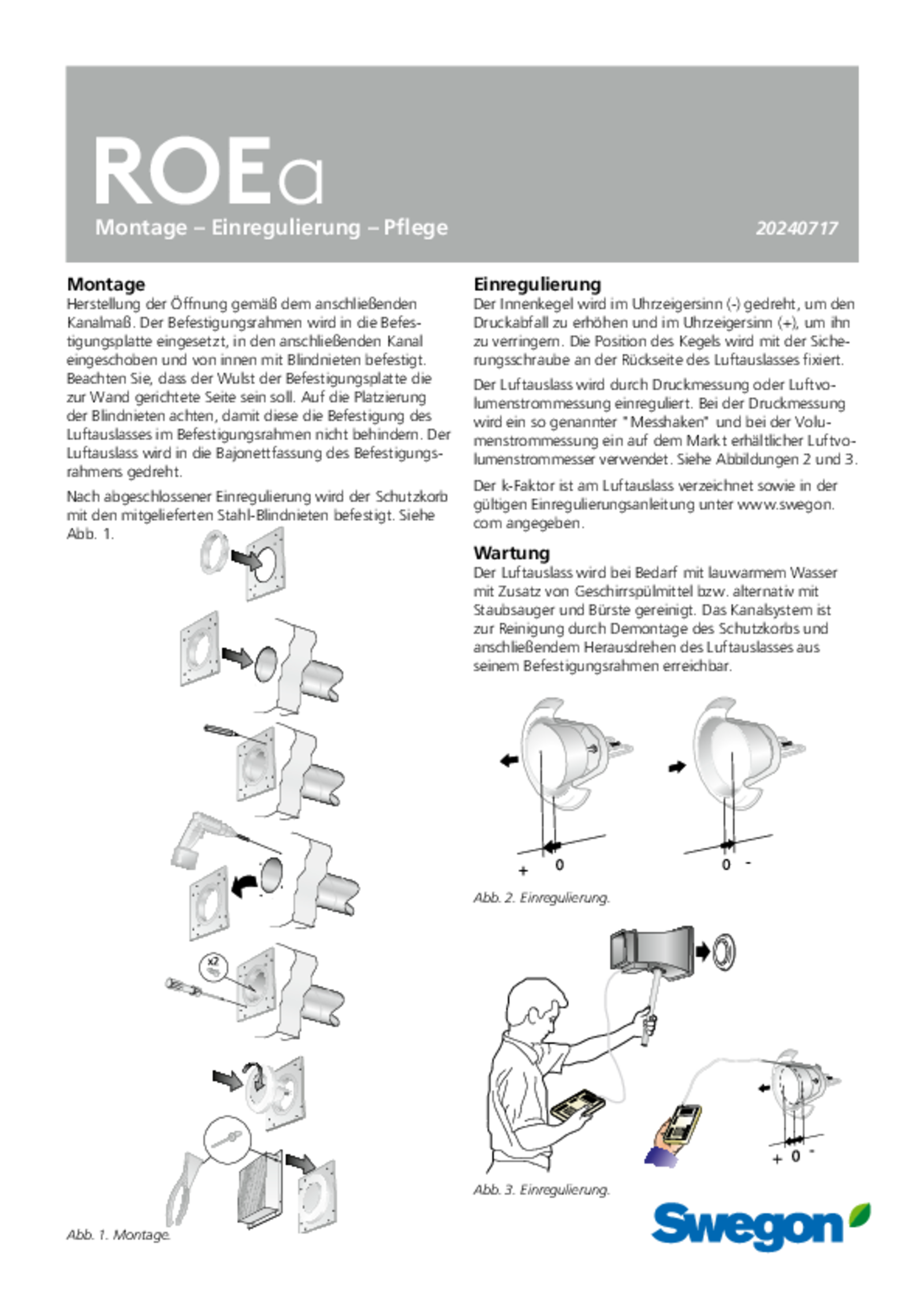 | Montage, Einregulierung, Wartung (pdf 450.05kB) | ROEa | IOM-Handbuch | |