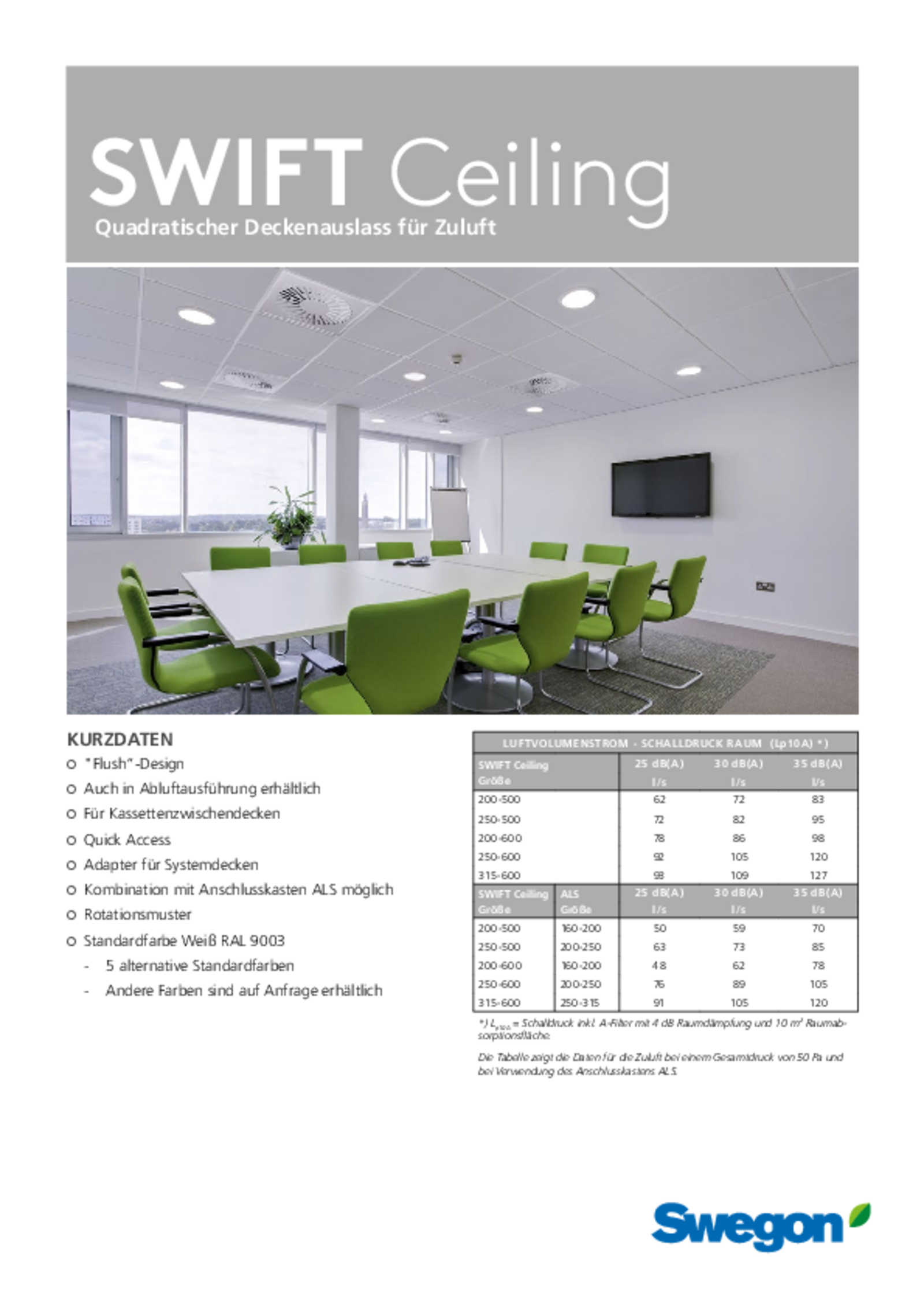 | SWIFT Ceiling Größe | ALS Größe |  l/s | ||