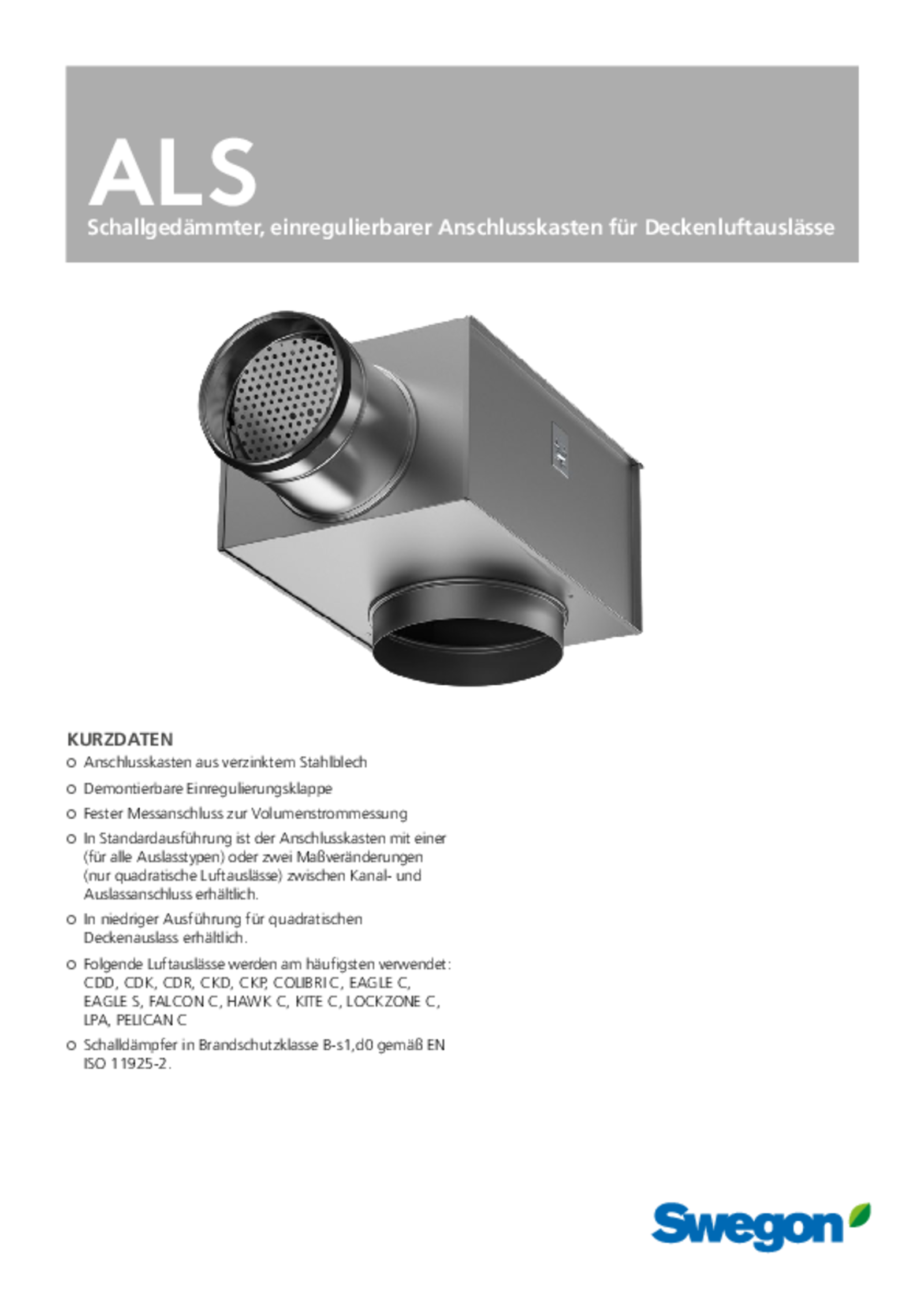 - Schalldämpfer in Brandschutzklasse B-s1,d0 gemäß EN ISO 11925-2