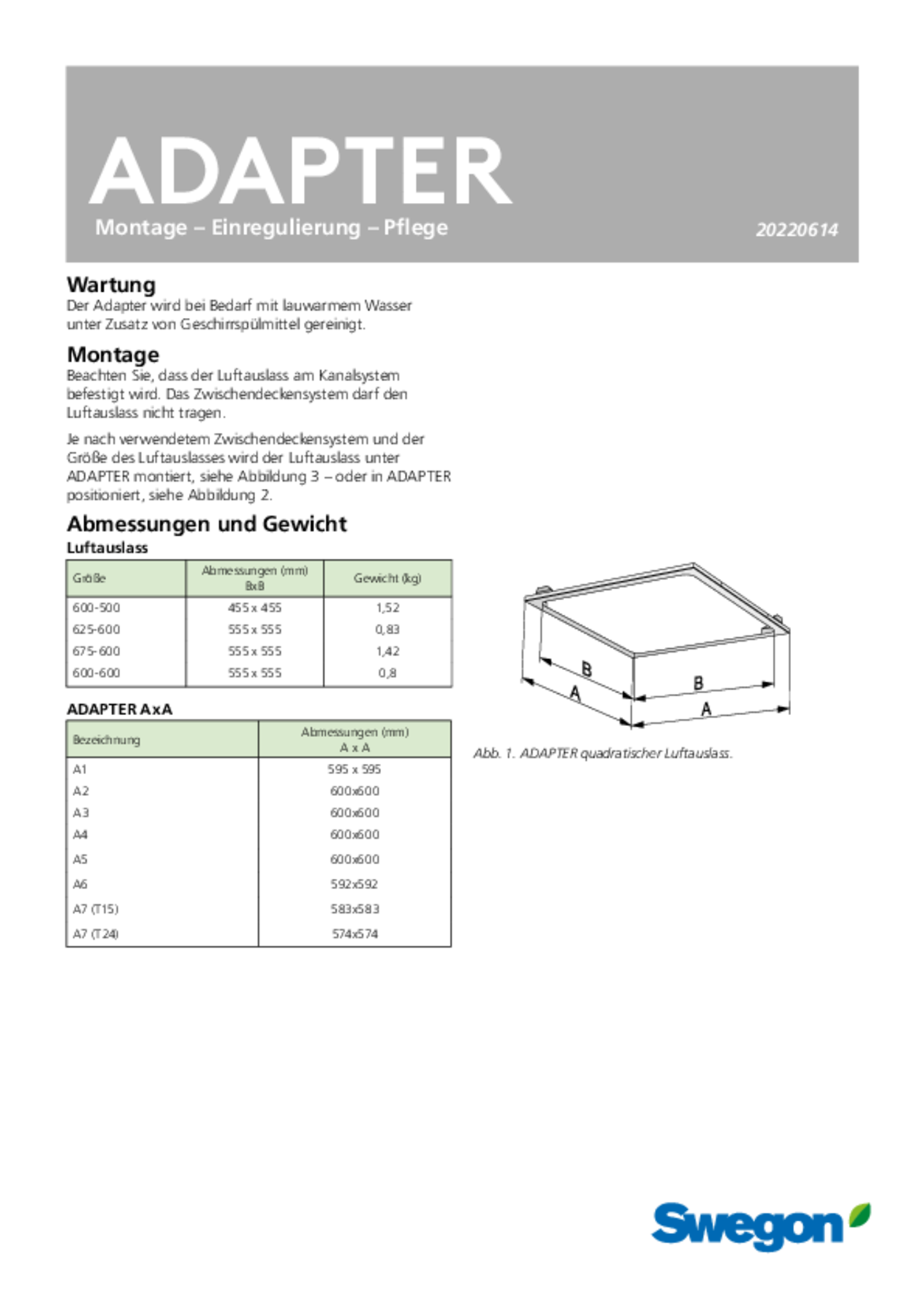 - ADAPTER wird zusammen mit Luftauslässen aus dem Ceiling Collection Sortiment verwendet