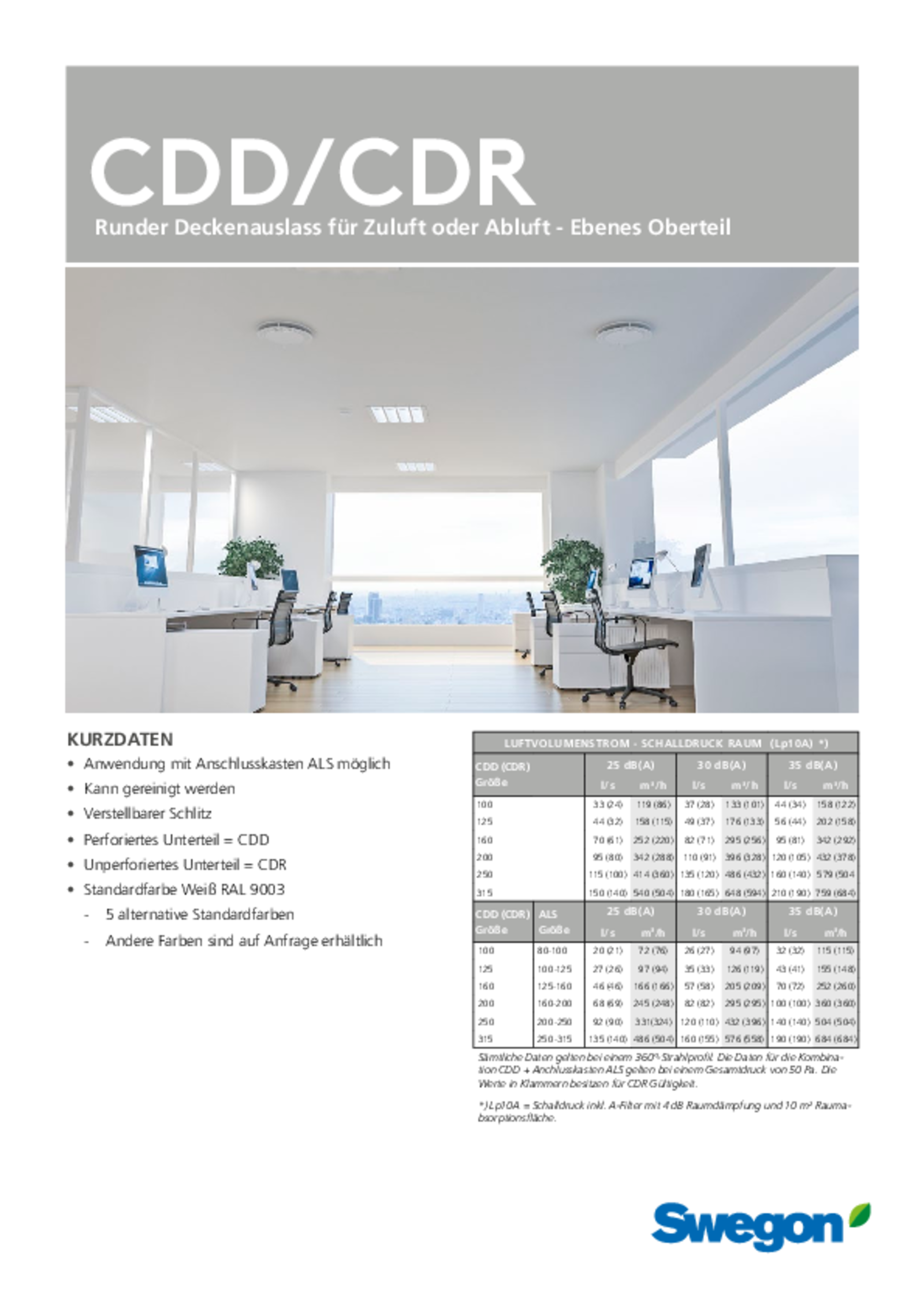 Runder Deckenauslass für Zuluft oder Abluft - Ebenes Oberteil