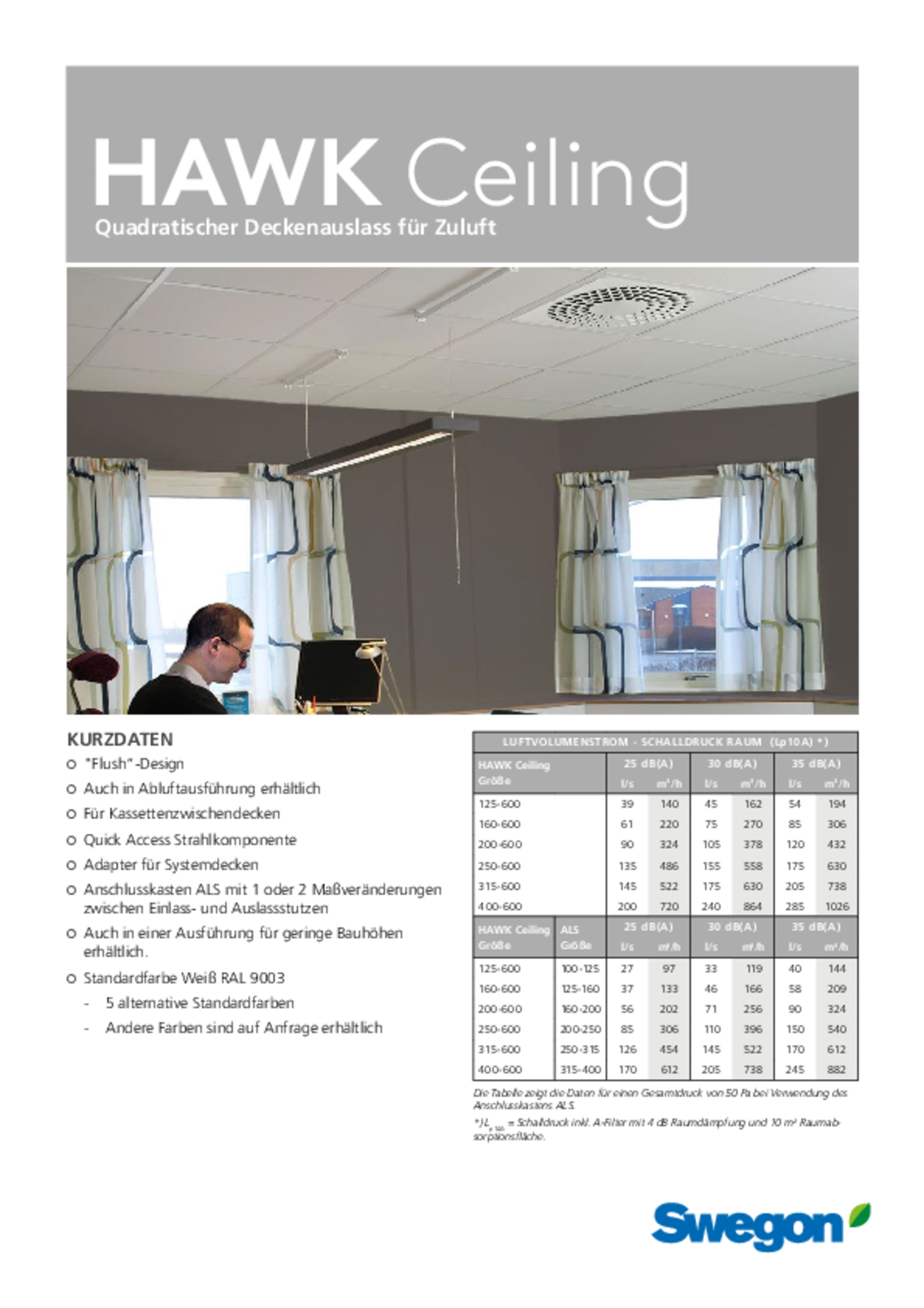 | HAWK Ceiling Größe | ALS Größe | 25 dB(A) | 30 dB(A) | 35 dB(A) | |||