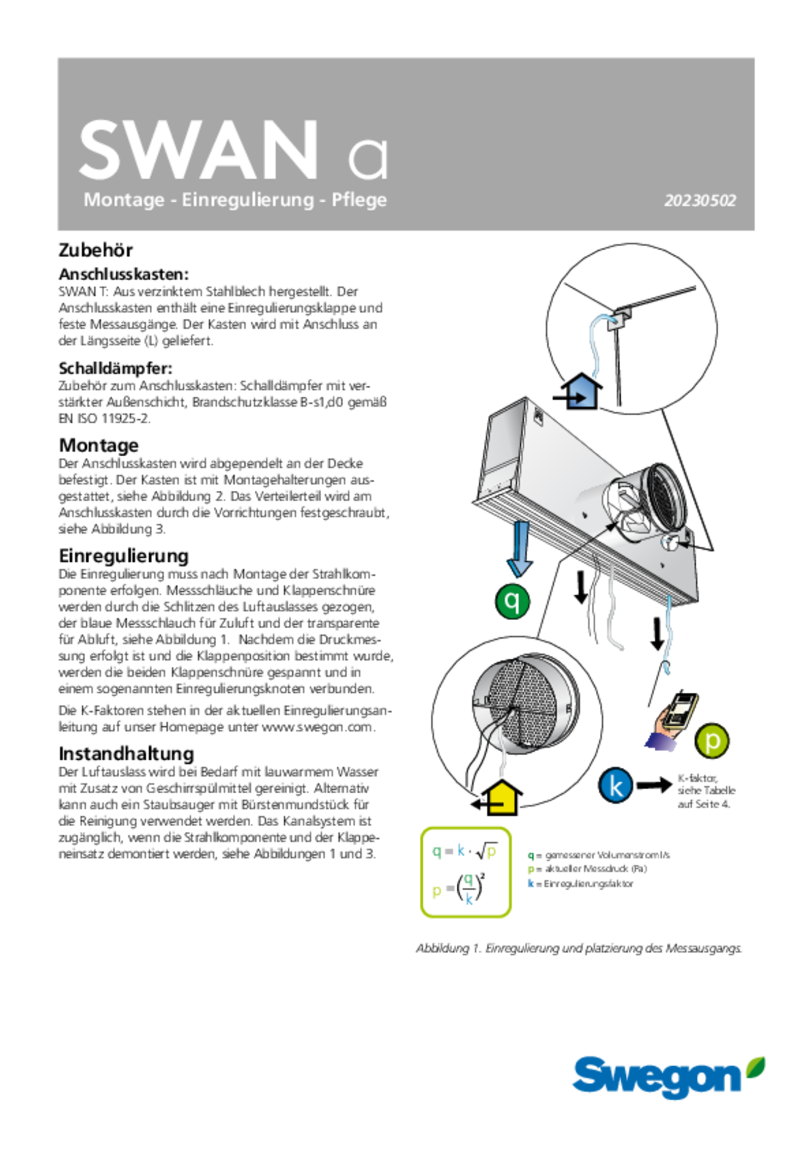 | Montage, Einregulierung, Wartung (pdf 969.22kB) | SWANa | IOM-Handbuch | |