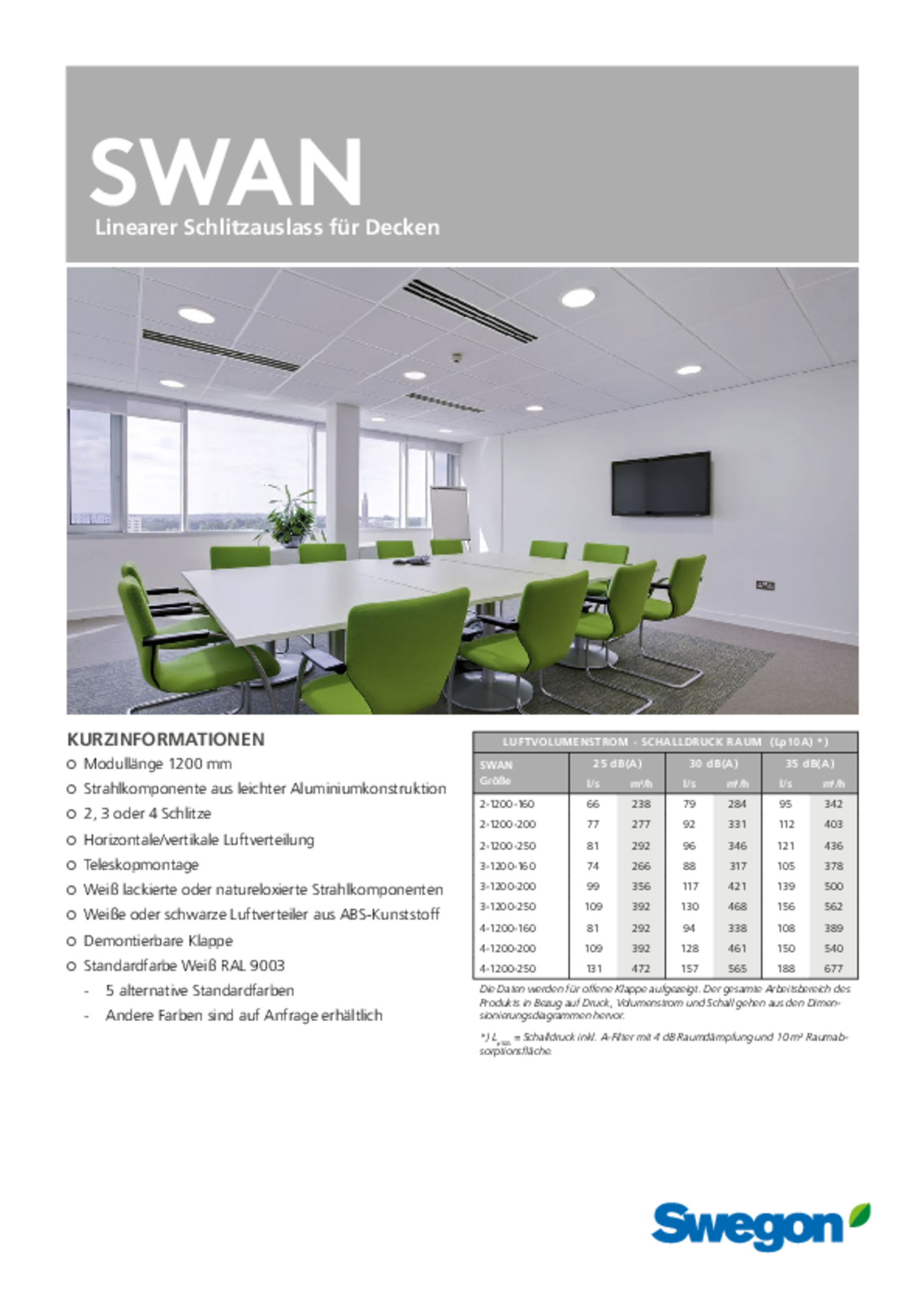 | Linearer Spaltluftauslass für Decken (pdf 1.31MB) | SWANa | Technischer Katalog | |