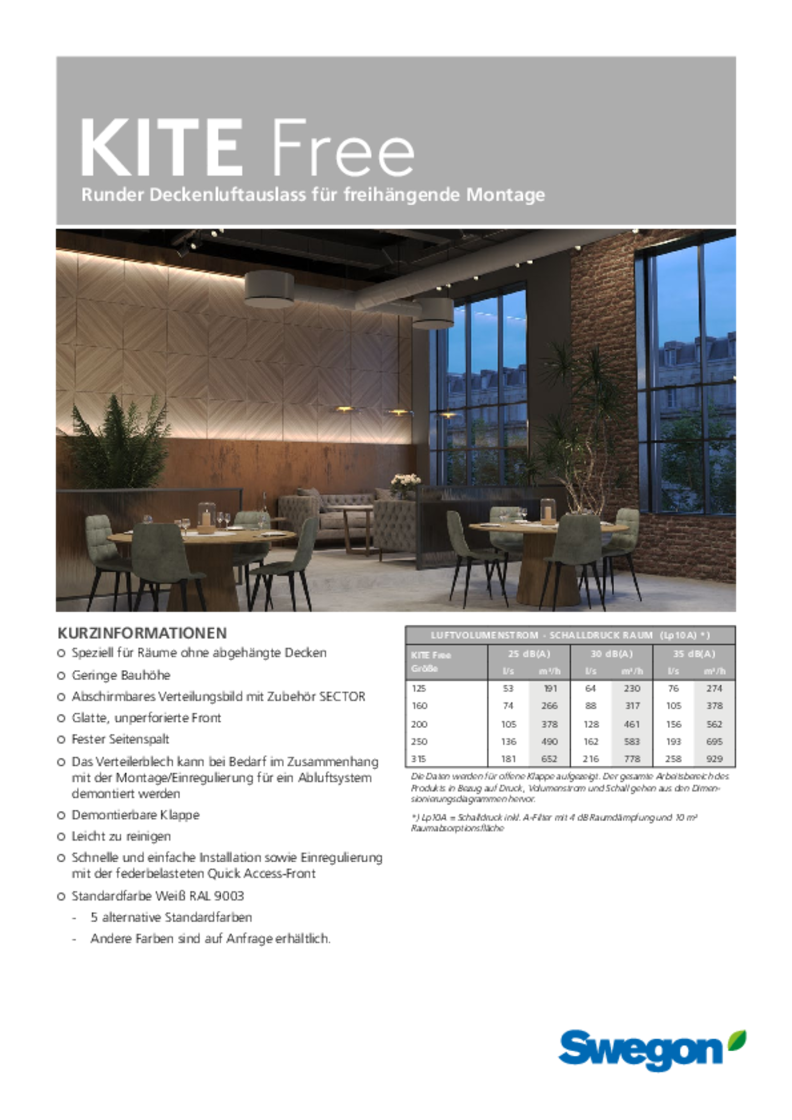 Runder Deckenluftauslass für freihängende Montage