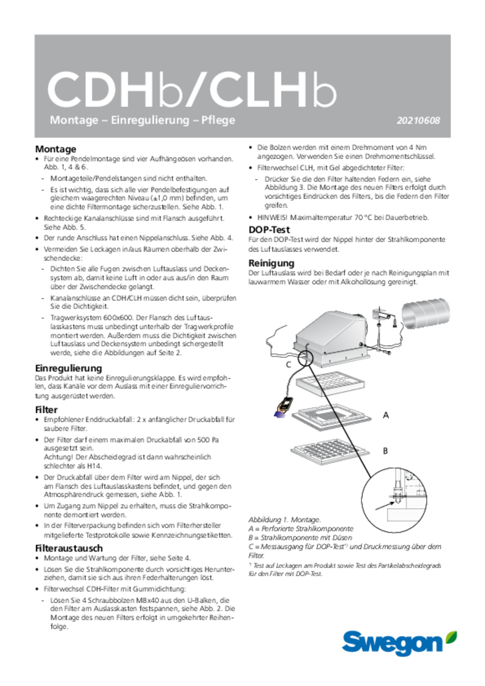 - Ausgerüstet mit Hepafilter H14 mit Gel (CLH)- oder Gummidichtung (CDH)