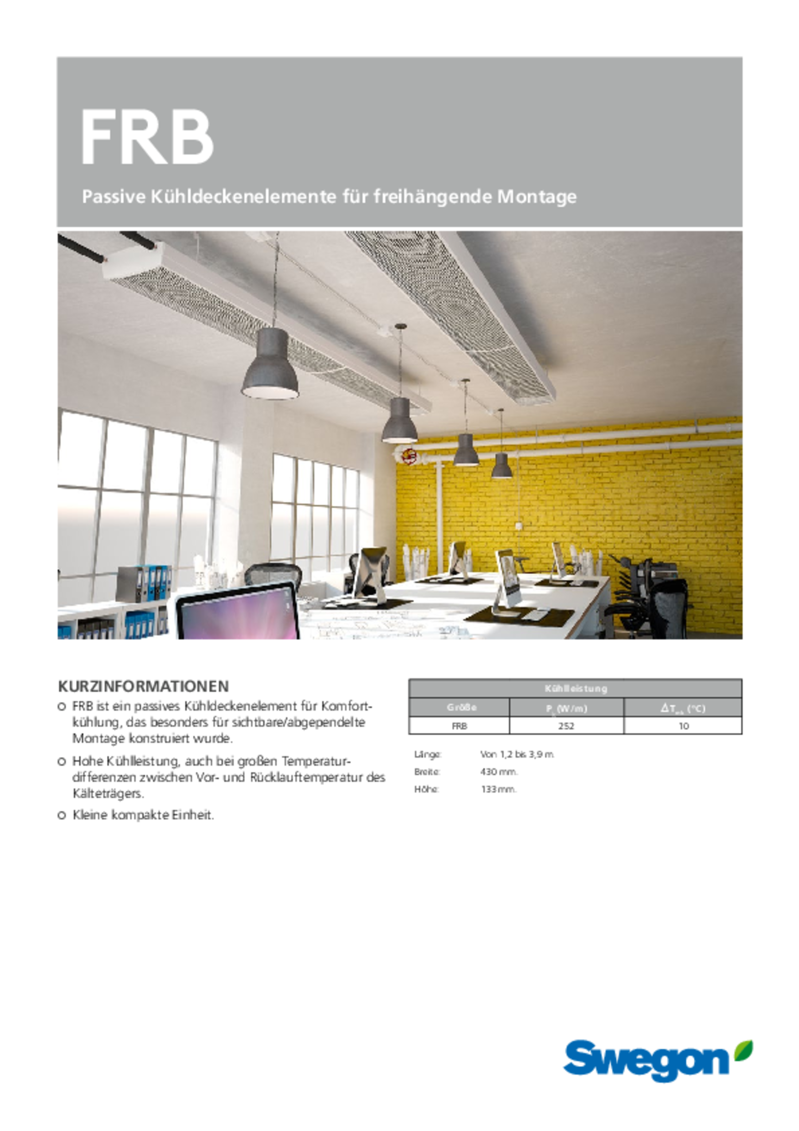 | Passive Kühldeckenelemente für freihängende Montage (pdf 735.15kB) | FRB c | Technischer Katalog |