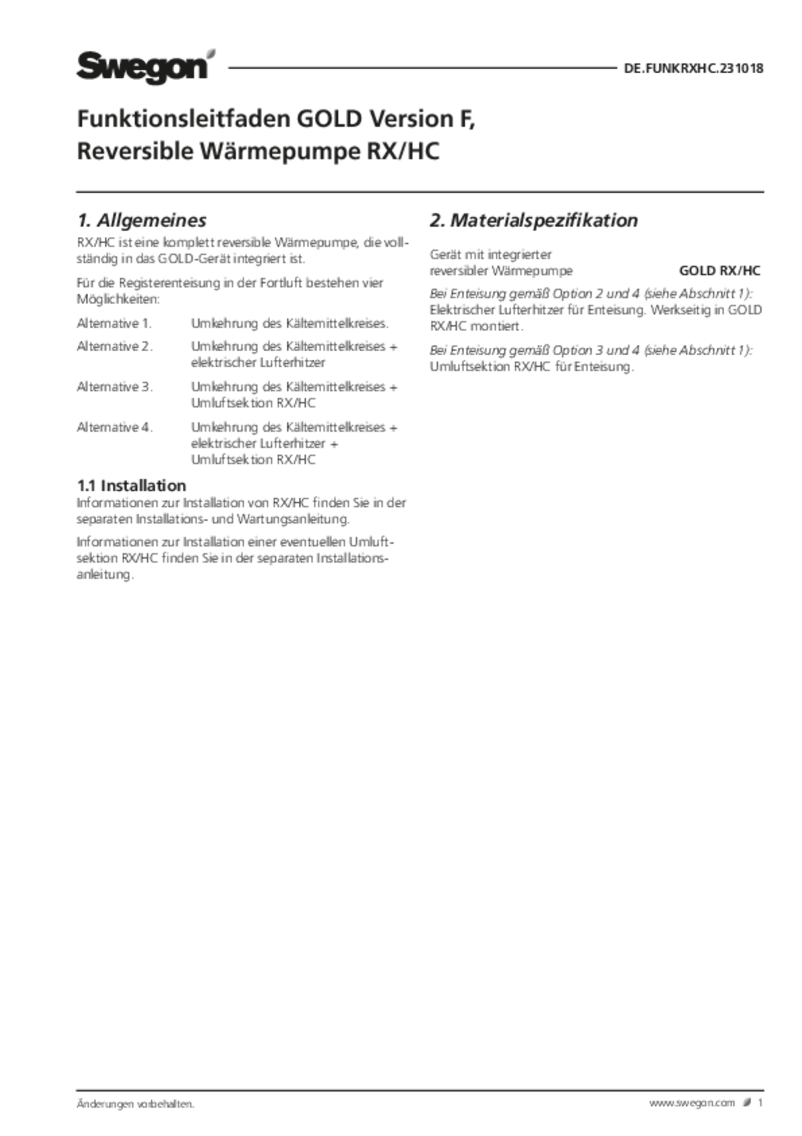 Kombi-Lüftungsgerät als Komplettlösung und reversible Wärmepumpe. Das Ergebnis ist Frischluft, Heizung und Kühlung in einem schlanken und energieeffizienten Design. Die Planung wird dadurch vereinfacht, dass wir die Integration zwischen der Wärmepumpe und dem Lüftungsgerät mechanisch und steuerungstechnisch bereits für Sie erledigt haben. Die Installation wird weiter vereinfacht, wenn Sie sich dafür entscheiden, das Gerät werksseitig befüllen, prüfen und betriebsbereit machen zu lassen. Das Gerät ist auch als Ausführung nur für Kühlung verfügbar und heißt dann GOLD RX/C.