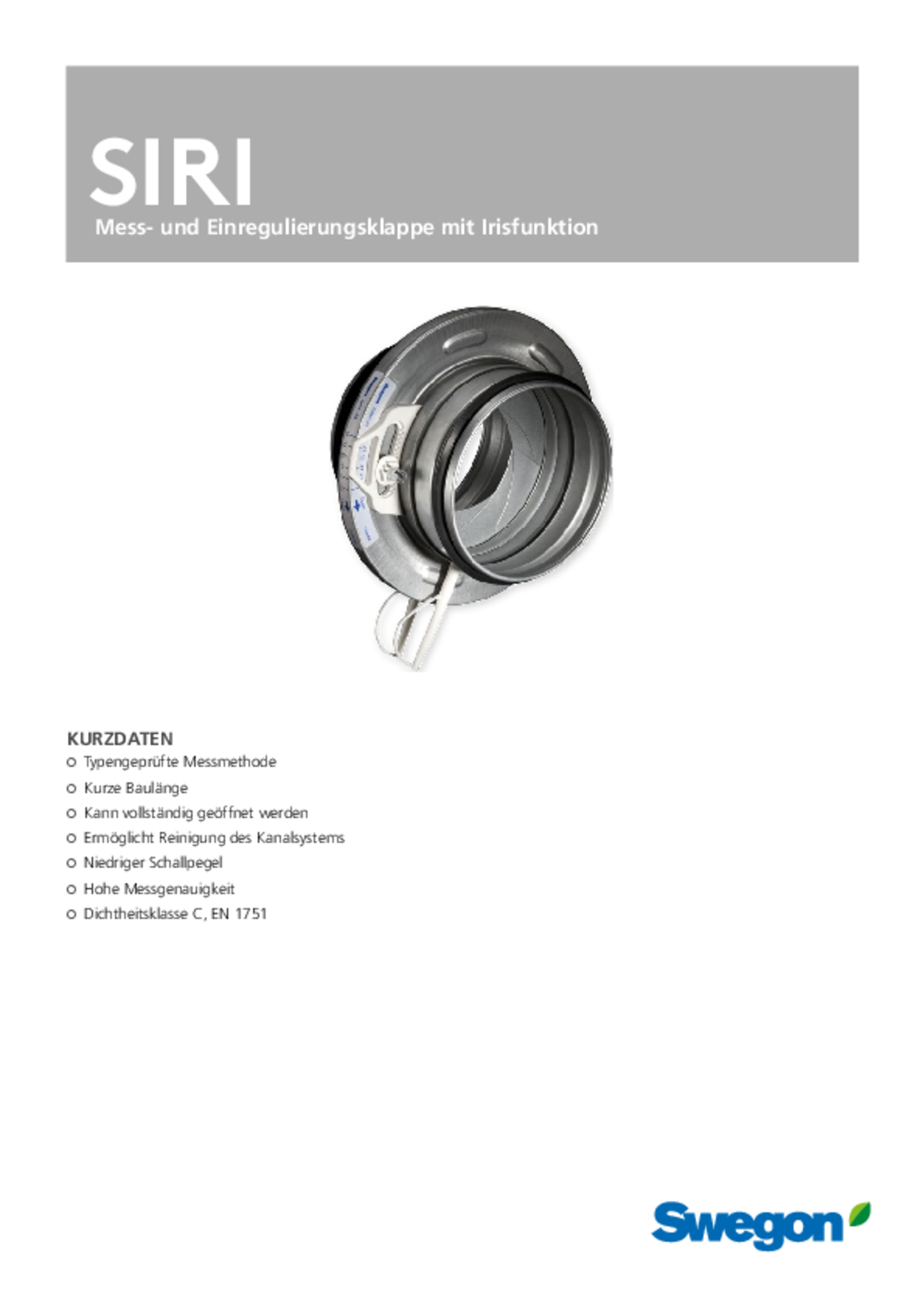 Mess- und Einregulierungsklappe mit Irisfunktion