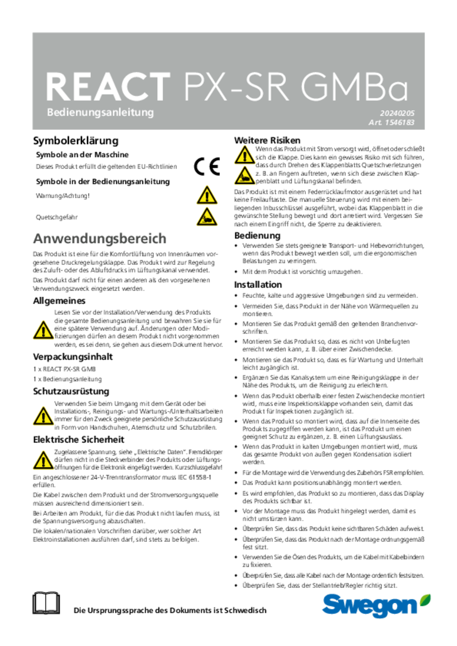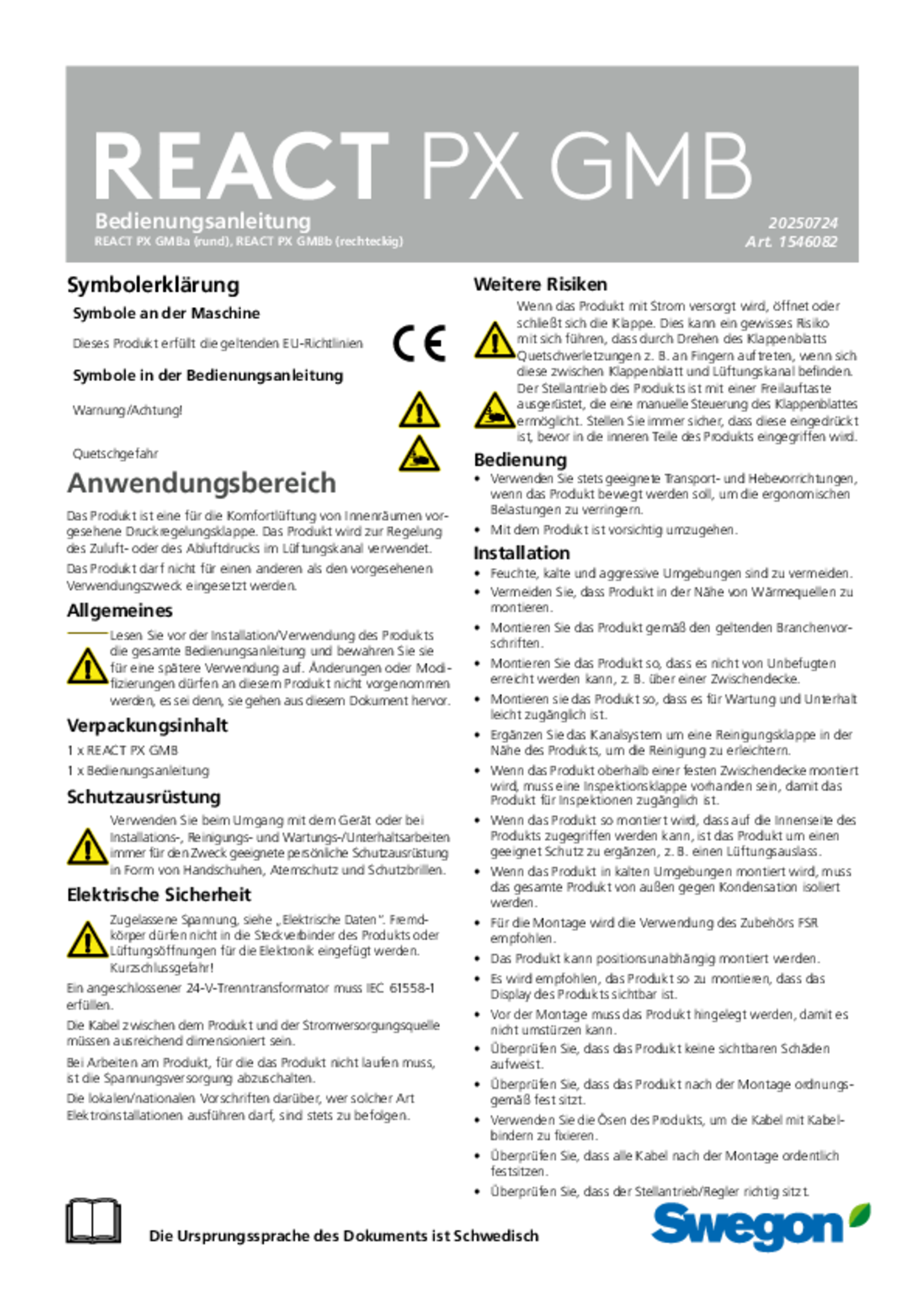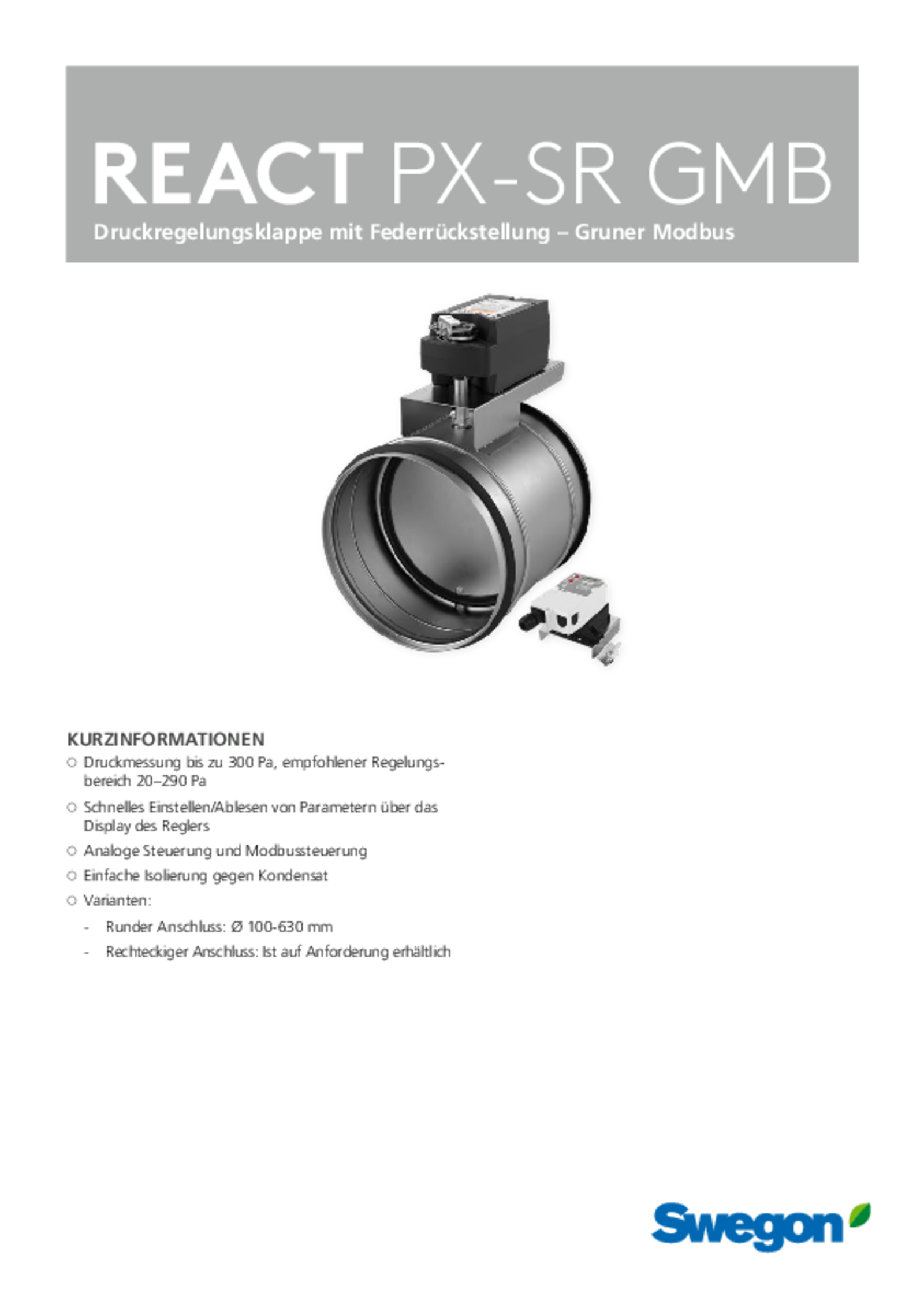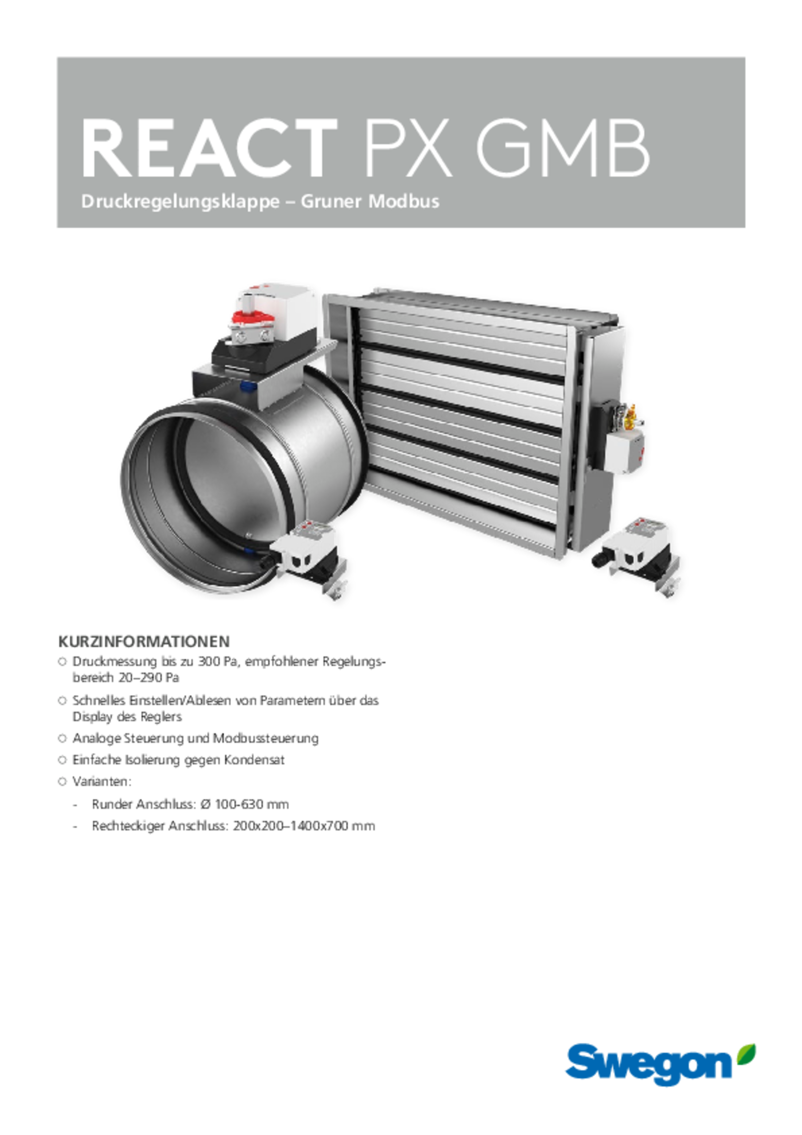 - Vorgesehen für die Drucksteuerung einer Komfortlüftung.