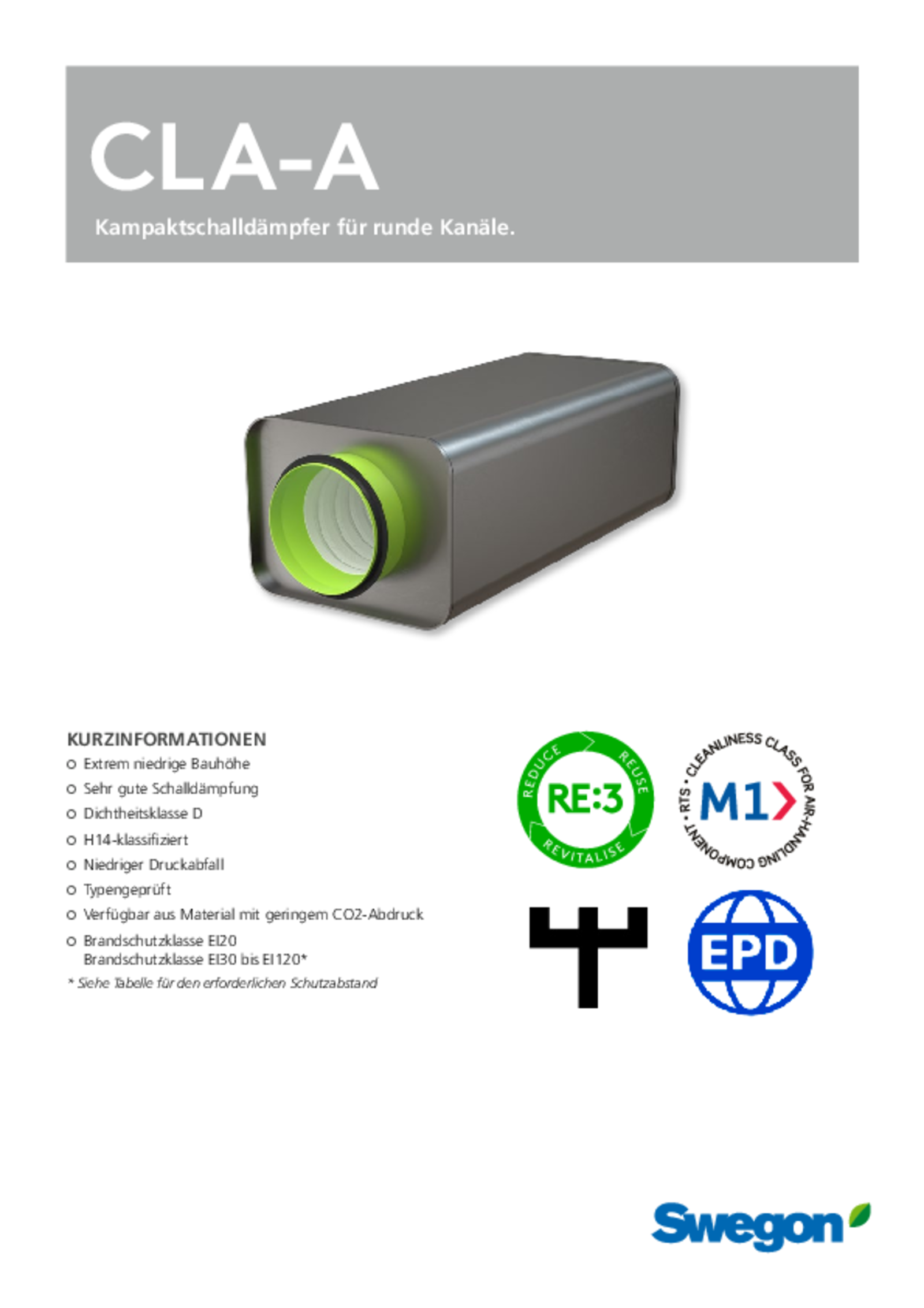 CLA ist Teil des RE:3-Konzepts von Swegon, das auf den Schlüsselprinzipien der Zirkularität basiert und aus RE:duce, RE:use und Re:vitalise besteht. CLA wird aus nachhaltigem Blech namens RRP hergestellt, wobei RRP für „recycelt und erneuerbar produziert“ steht. Der Stahl hat einen Anteil von mindestens 75 Prozent an recyceltem Stahl. Darüber hinaus kommen bei der Herstellung Elektrolichtbogenöfen zum Einsatz, die zu 100 Prozent mit erneuerbarer Energie betrieben werden.