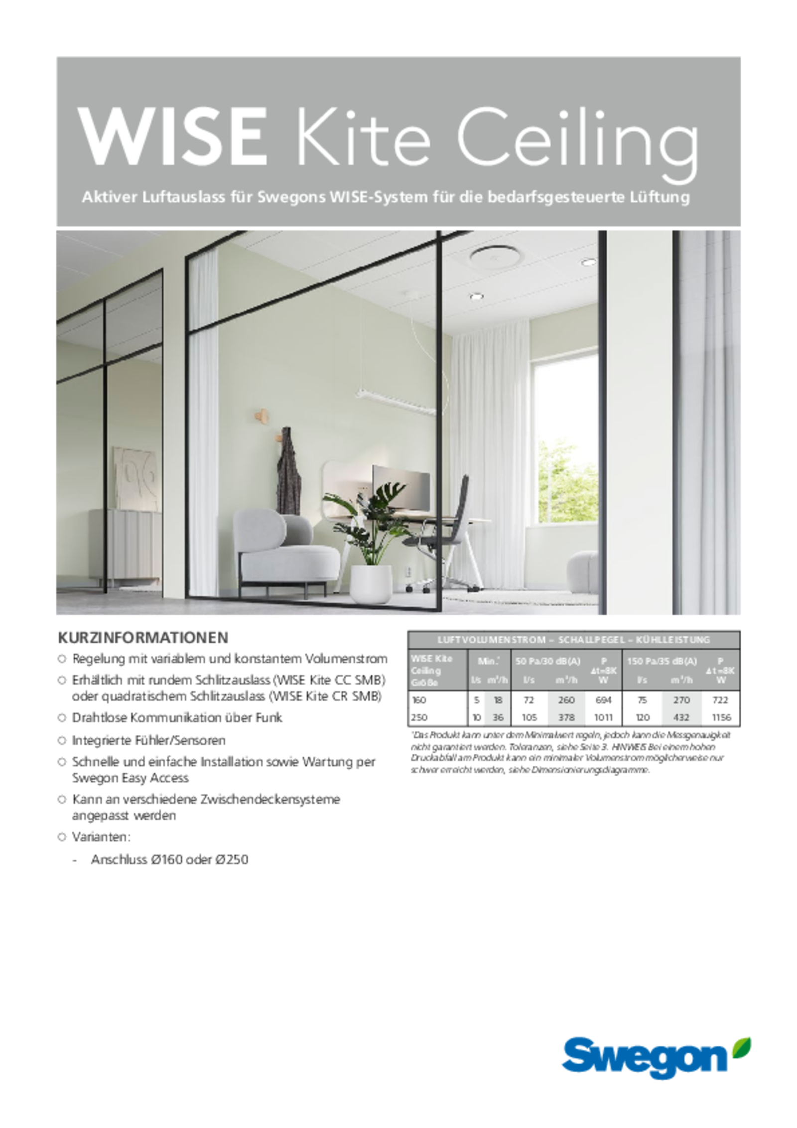 Aktiver Luftauslass für Swegons WISE-System für die bedarfsgesteuerte Lüftung (pdf 763.31kB) WISE Kite CC SMBa, WISE Kite CR SMBa Technischer Katalog