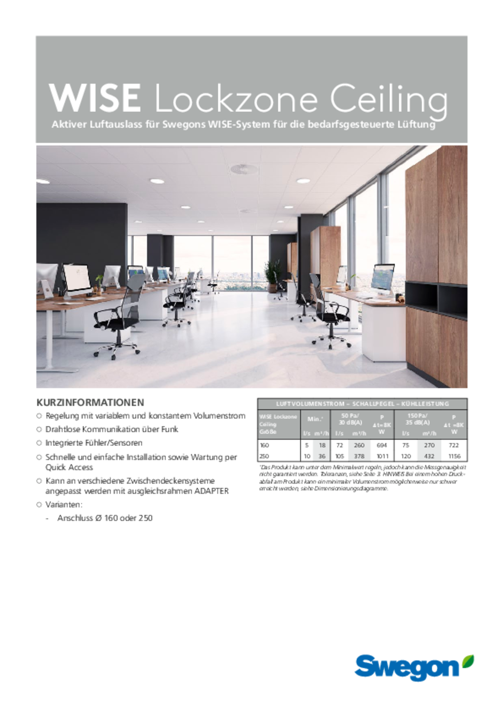 Aktiver Luftauslass für Swegons WISE-System für die bedarfsgesteuerte Lüftung (pdf 777.06kB) WISE Lockzone Ceiling a Technischer Katalog