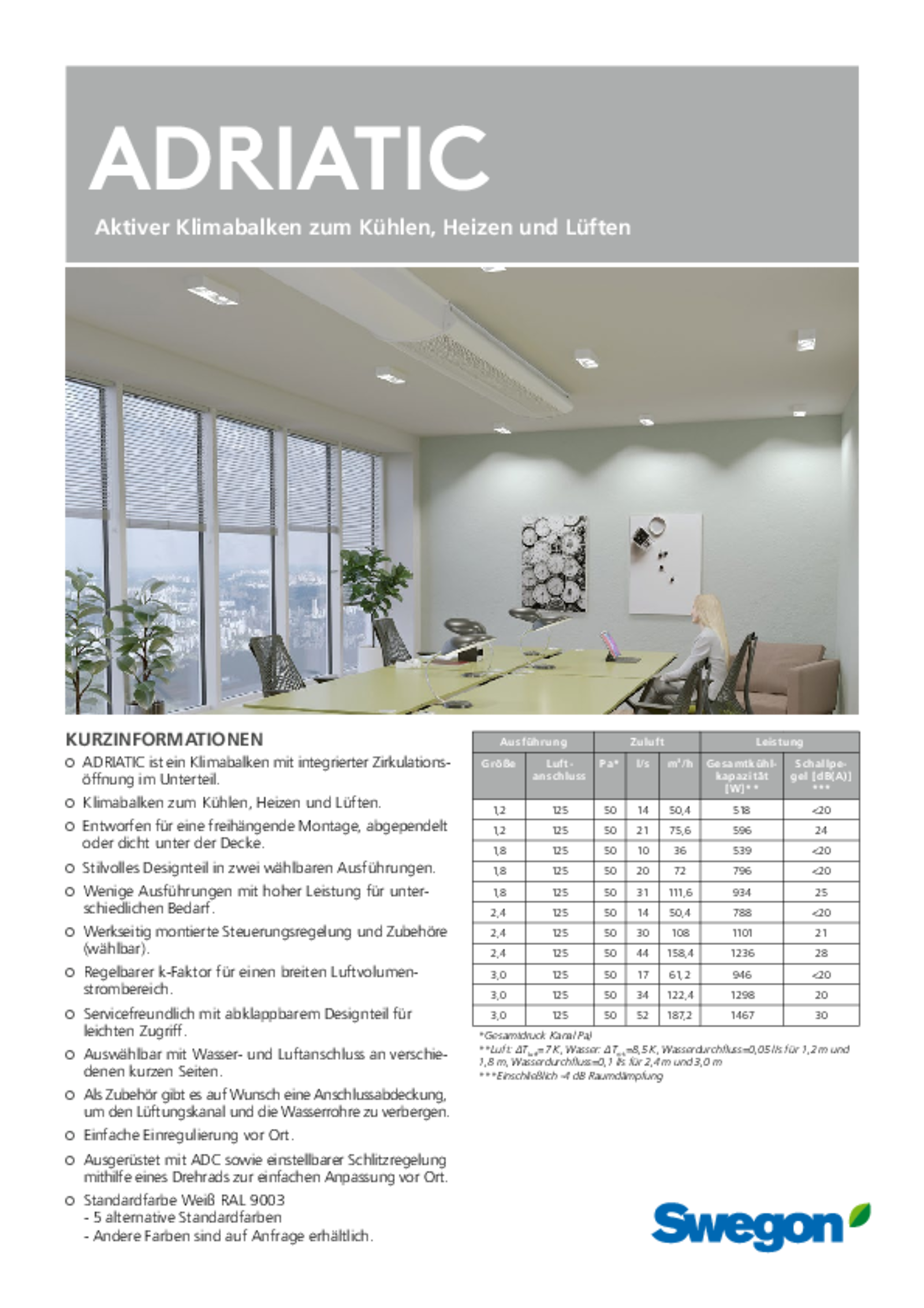 Aktiver Klimabalken zum Kühlen, Heizen und Lüften (pdf 5.09MB) ADRIATIC Technischer Katalog