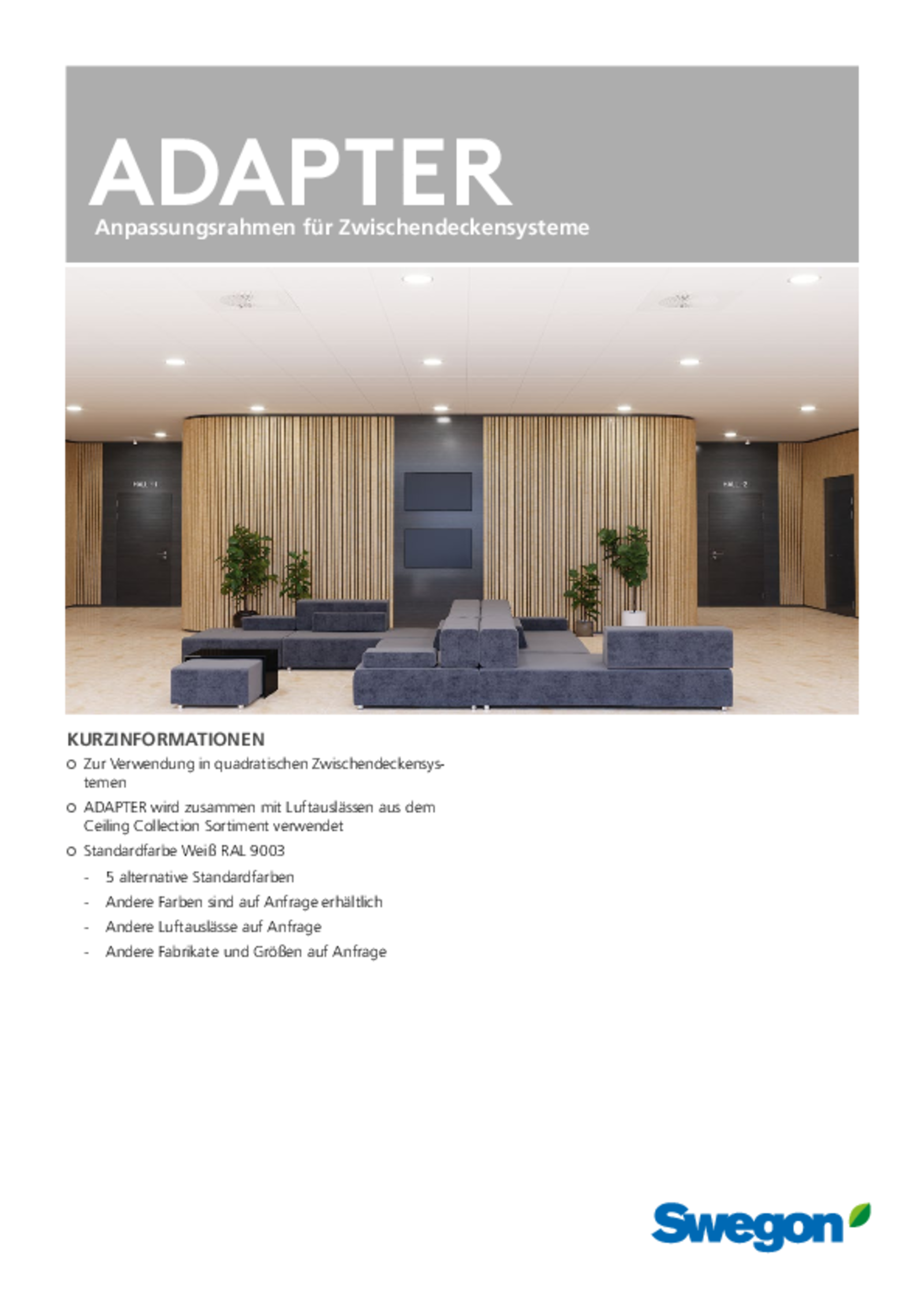 Adapter für Kassettenzwischendecken (pdf 1006.42kB) ADAPTER Technischer Katalog