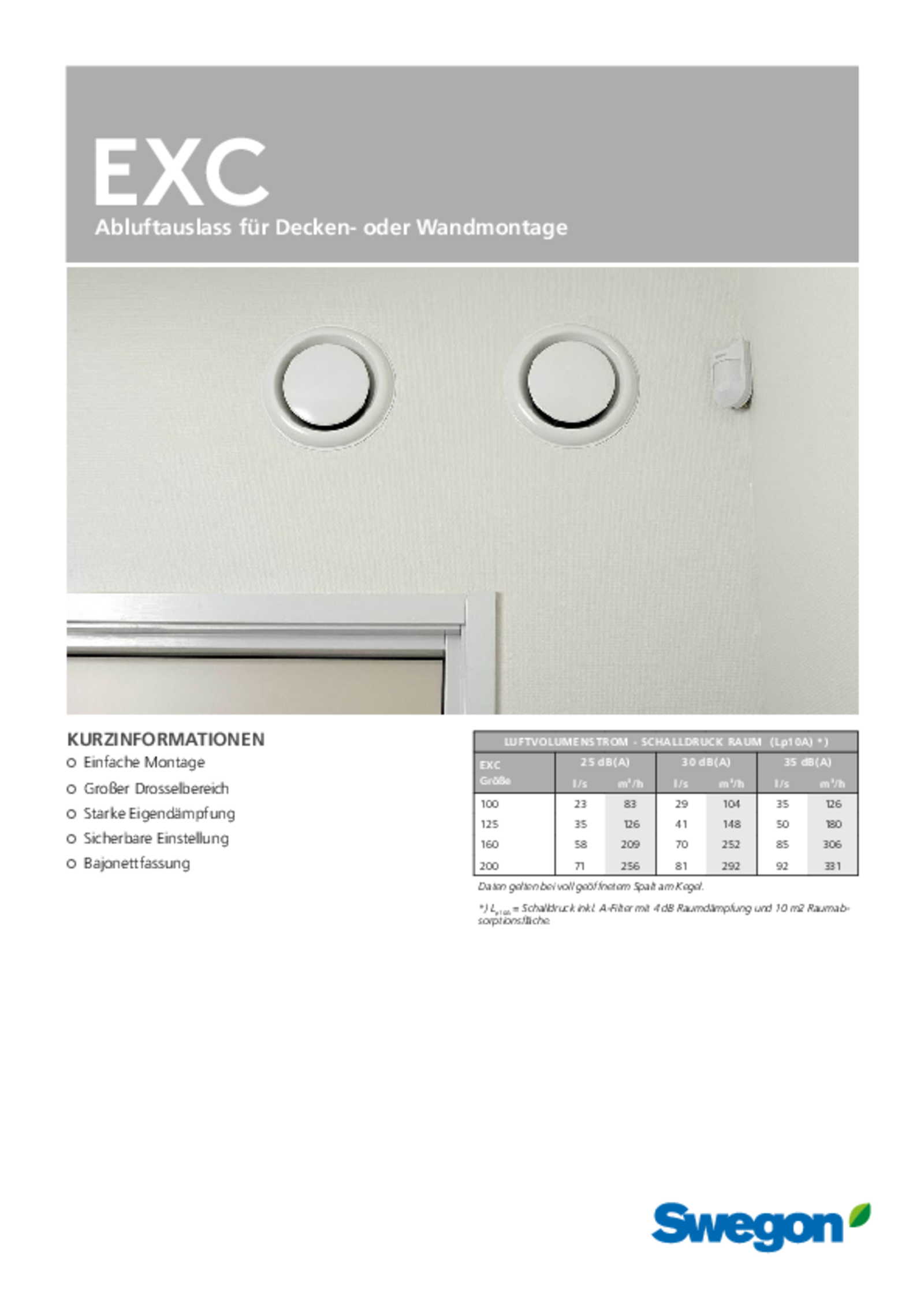 Abluftauslass für Decken- oder Wandmontage (pdf 538.26kB) EXCa Technischer Katalog