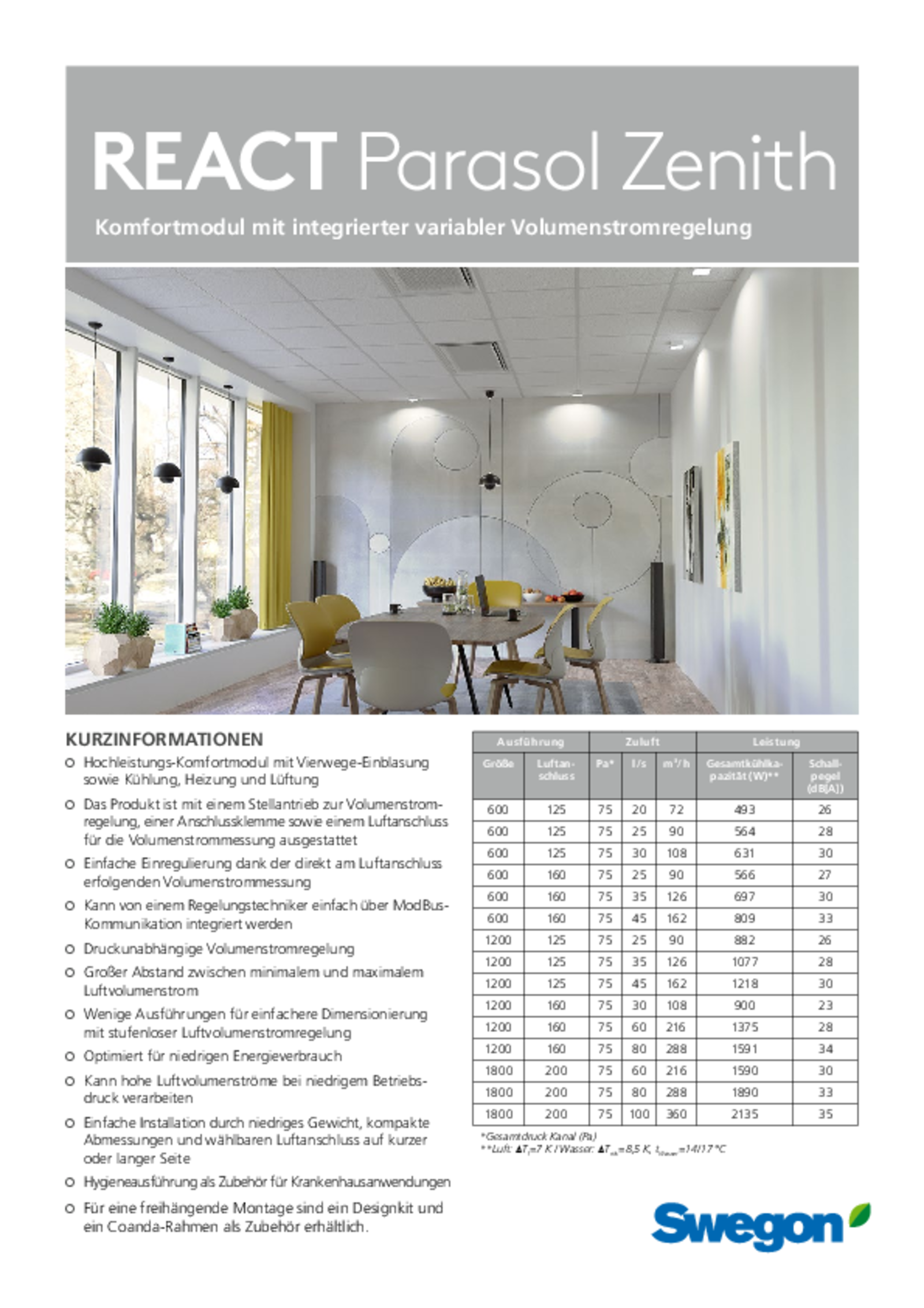- Wenige Ausführungen für einfachere Dimensionierung mit stufenloser Luftvolumenstromregelung
