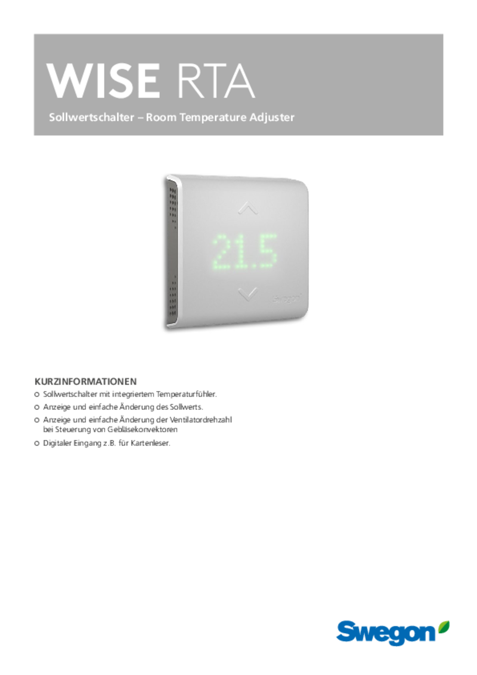 Sollwertschalter - Room Temperature Adjuster (pdf 611.18kB) WISE RTAa Technischer Katalog