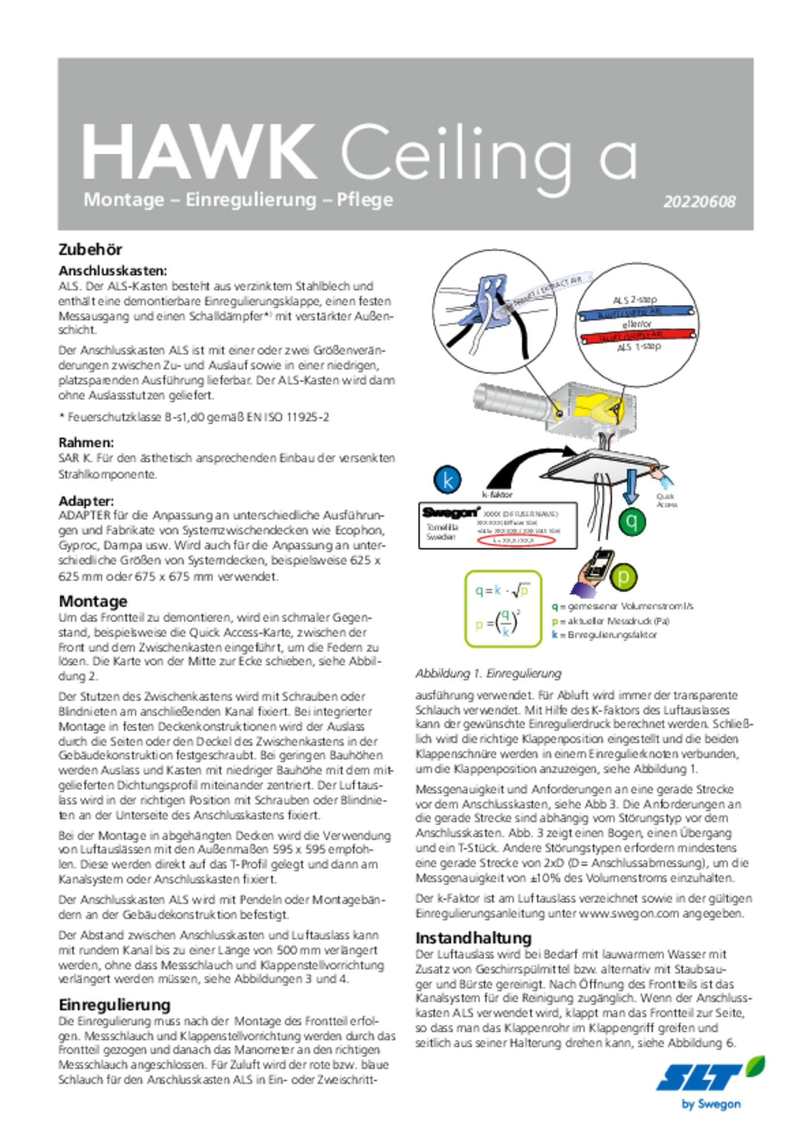 • Anschlusskasten ALS mit einer oder zwei Massänderungen zwischen Ein- und Auslass