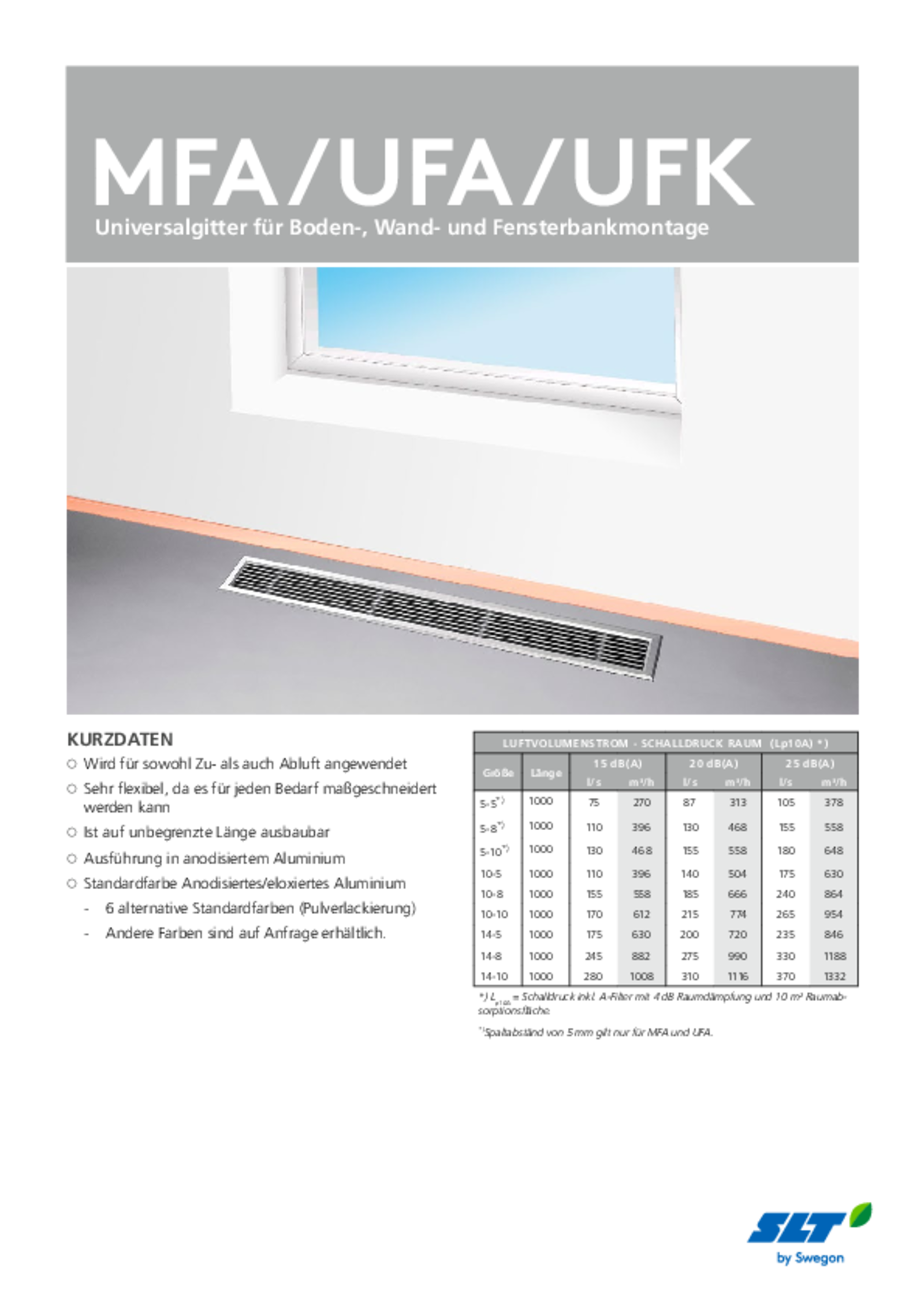 MFA – rahmenbefestigte Aluminiumblätter, stromlinienförmig für ein stabiles Strömungsverhalten. Das Gitter ist besonders steif und somit für grosse Aussenbelastungen ausgelegt. Das Universalgitter wird vor Ort auf eine unbegrenzt Länge montiert.