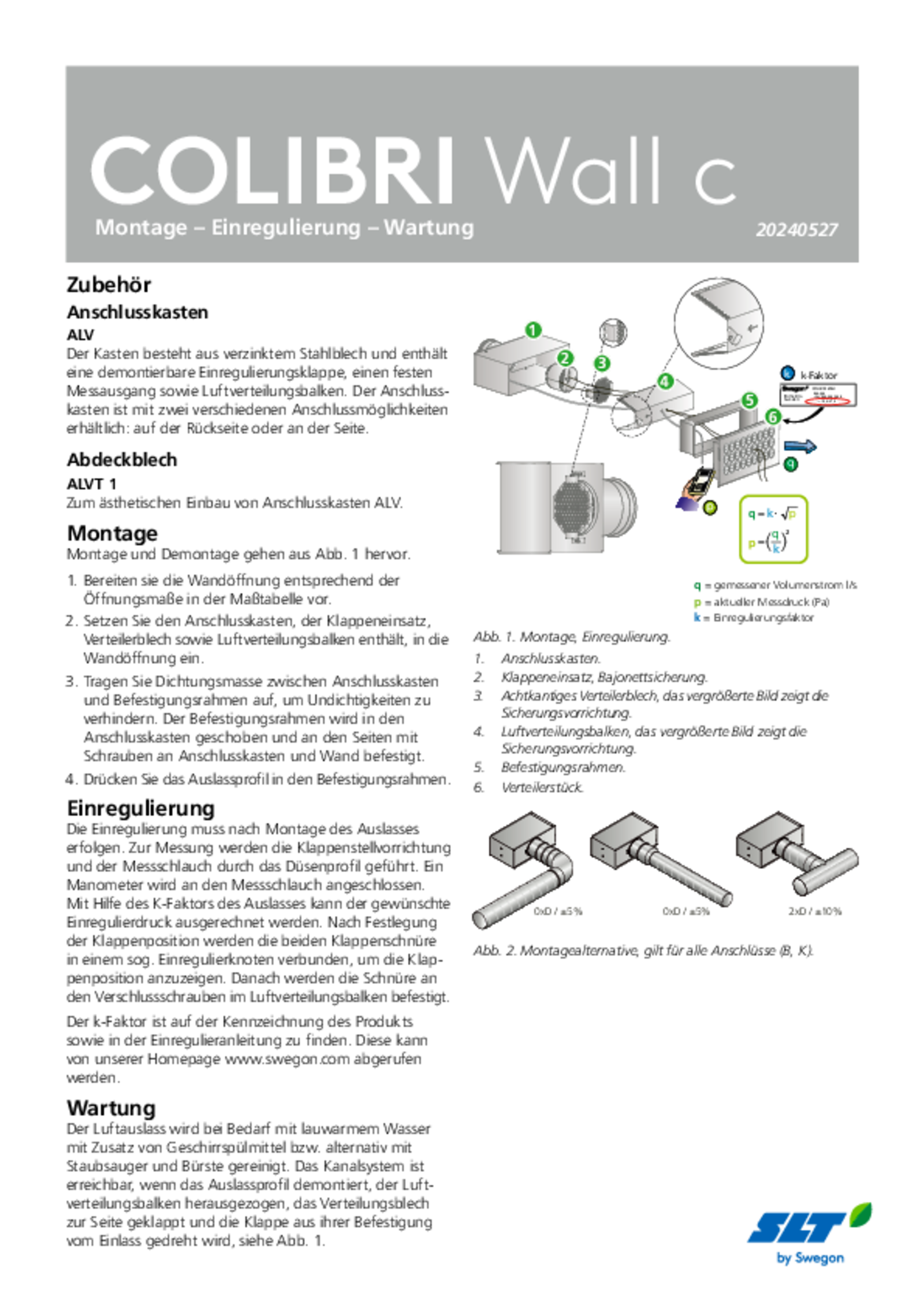 • Wird mit Anschlusskasten ALV verwendet