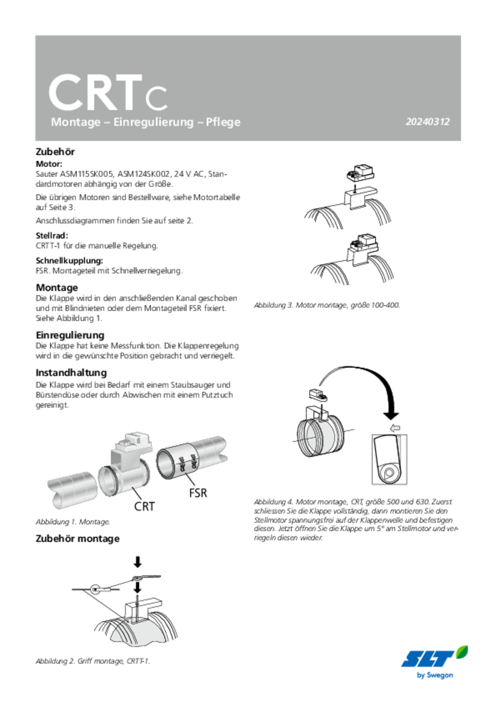 Runde Einregulierungsklappe, bestehend aus einem Kanalteil mit Klappe und Kanalanschlüssen mit Gummidichtung. CRT ist in der Standardausführung für die Motorregelung vorbereitet.