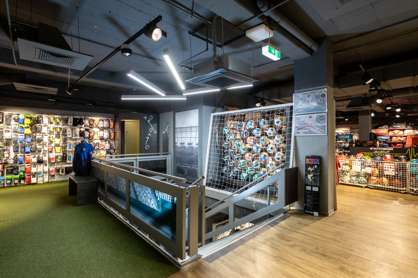 In dem Intersport inDelmenhorst gab es ein paar Herausforderungen: Der Betreiber wollte sein dunkles Raumdesign nicht durch sichtbare Technik stören lassen. Die Räume sind dunkel gestaltet, haben aber gleichzeitig sehr viel Lichtspiel und schwarz-graue Wände und Decken. Der Ladenbetreiber wollte unverkleidete Geräte und sein altes System aus den 90ern auf einen zeitgemäßen technischen Stand bringen. Außerdem war ihm natürlich eine schnellstmögliche Umsetzung und ein attraktives Preis-/ Leistungsverhältnis wichtig. Zudem bekam der Shop nur zwei Innengeräte, aber die Luftverteilung sollte doch jeden letzten Winkel erreichen, damit kein Kunde trotz des Wärmeeintrags durch das Lichtkonzept schwitzt.