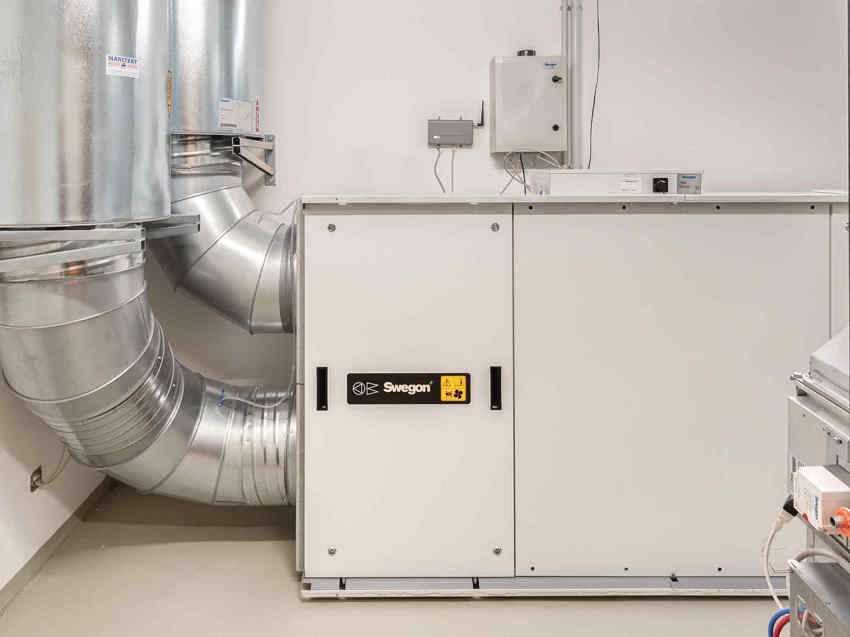 Für ein jederzeit gesundes Klima sorgen in der neu errichteten KiTa der AWO zwei RLT Geräte mit Rotationswärmetauscher. Die Rotoren fertigt Swegon im eigenen Werk in Kvänum. Sie gewinnen durch ihre spezielle, patentierte Geometrie besonders effizient Wärme zurück. Das funkbasierte Regelungssystem Swegon WISE übernimmt die bedarfsgerechte Volumenstromregelung in den Räumlichkeiten für die Kinder. Gegenüber einer Lüftungsanlage mit konstantem Volumenstrom spart eine Bedarfsregelung bis zu 90% der Betriebskosten ein, weil je nach Belegung und Anforderung die ausreichende Frischluftzufuhr sichergestellt wird.