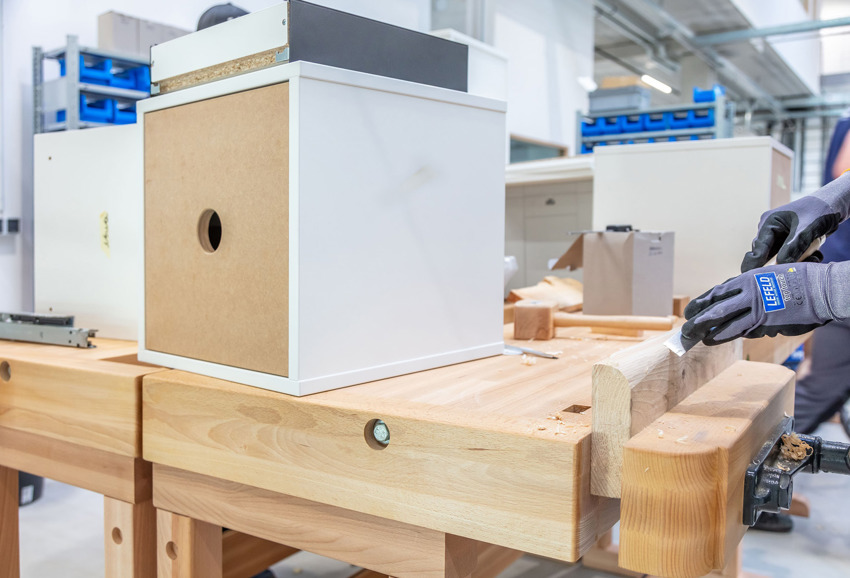 Mit der Lehrfabrik Möbelindustrie ist in Löhne (Nordrhein-Westfalen) ein zukunftsweisendes Bildungszentrum entstanden, das gezielt auf die Bedürfnisse der regionalen Holz- und Möbelbranche eingeht. Im Herzen des neu entwickelten Bildungscampus bietet die Einrichtung praxisnahe Qualifizierungsmöglichkeiten auf höchstem technischem Niveau. Das Gebäude der Lehrfabrik entstand 2024 als innovativer Neubau mit einer Gesamtfläche von 3.700 Quadratmetern auf zwei Etagen. Die Lehrwerkstatt sowie die Technikräume befinden sich im Erdgeschoss; der erste Stock umfasst Lehrräume, Büros und Pausenräume. Nachhaltigkeit und hohe Wirtschaftlichkeit waren sowohl für die Bau- als auch die Nutzungsphase als entscheidendes Kriterium vorgegeben. Für die Planung und Umsetzung waren die Firmen Bienek GmbH und Brüninghoff GmbH & Co. KG verantwortlich.