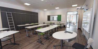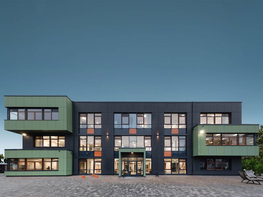 In den Berufsbildenden Schulen Sophie Scholl sorgt eine Swegon GOLD RX 25 Lüftungsanlage mit Rotationswärmetauscher für einen Luftaustausch von 6.500 m³/h. Die Luftverteilung in den Schulräumlichkeiten übernehmen Swegon VIREO Auslässe. Ein Swegon WISE II Connect Regelungssystem steuert die bedarfsgerechte Lüftung in allen Lernräumen. Der Clou an WISE II: Es ist keine Vorkonfiguration notwendig. Die Zuweisung der Rollen der Einzelgeräte erfolgt bei der Inbetriebnahme per IR Scanner vor Ort.