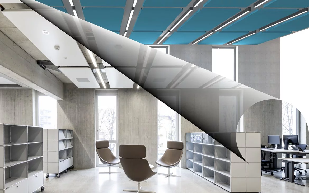 Die Deckenkühlung sorgt für eine angenehme Raumtemperatur und verbessert das Wohlbefinden der Menschen im Raum.