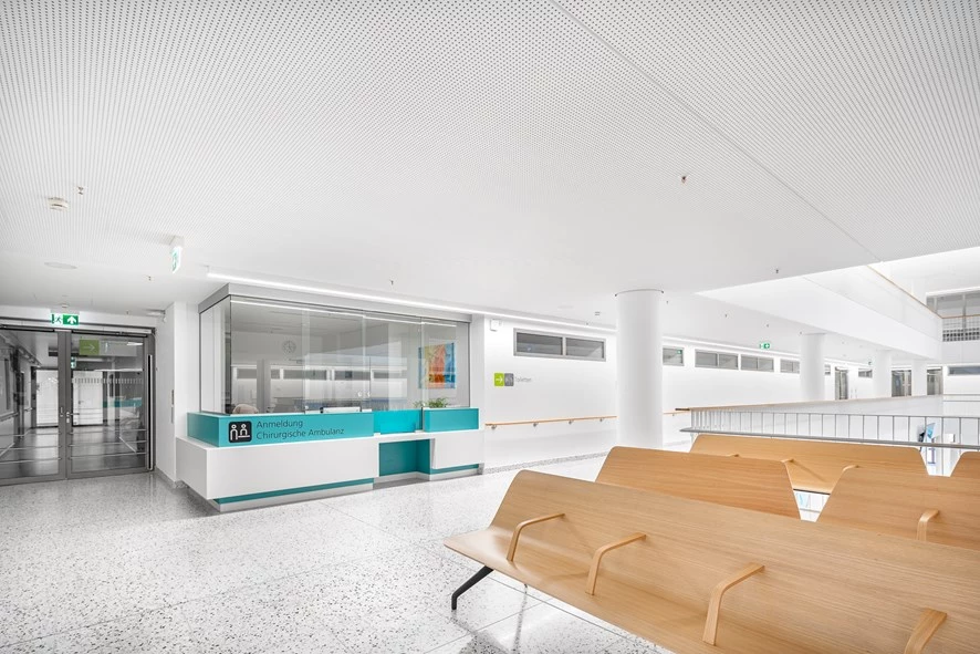 Die eingesetzten Systeme zur Flächentemperierung zeichnen sich vor allem durch die hohen Heiz- und Kühlleistungen aus. Weil eine sehr grosse Fläche für die Verteilung der Wärme- und Kälte eingesetzt wird, muss der Kälte- bzw. Wärmelieferant eine geringe Systemtemperatur bereitstellen. Dadurch senkt das Klinikum durch das Deckensystem sowohl seine Umwelt- als auch seine Betriebskosten.